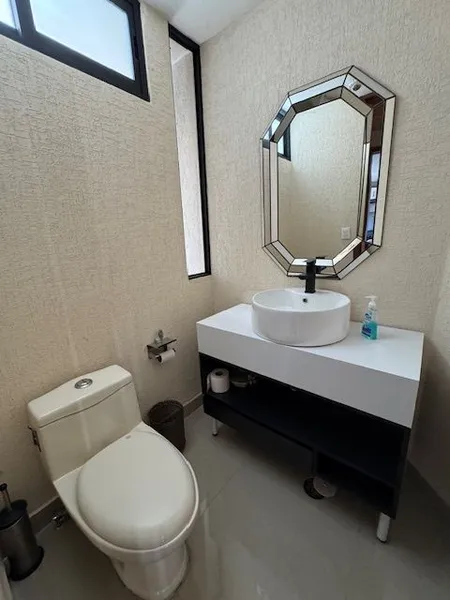 Casa recién remodelada, baños nuevos, canceles de aluminio negro, piso de loseta en cuartos y madera es sala, comedor, de con muy buenos espacios, iluminada y funcional en una colonia con vigilancia. La casa consta de sala con vista al patio, comedor, cocina integral, family room, medio baño de visitas. En segundo nivel 3 recámaras de muy buen tamaño la principal con vestidor y las otras dos comparten baño, cuarto de TV Los baños están recién remodelados, toda la ventaneria se cambio por aluminio Cuarto de servicio con baño, área de lavado, 3 estacionamientos. Conózcala!!!! * *