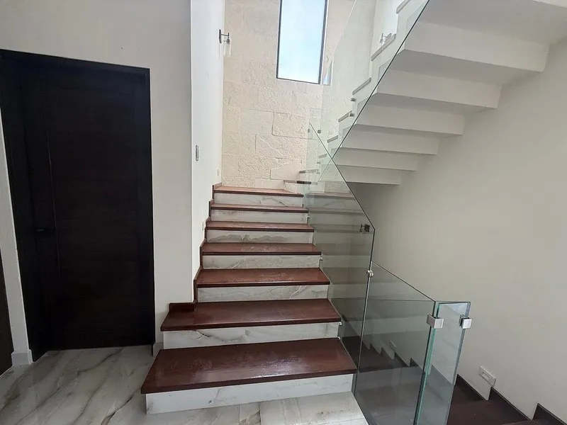 Casa en Venta – Castaños del Vergel | Carretera Nacional Residencia nueva de lujo en fraccionamiento privado sobre Carretera Nacional. Cuenta con 583.75 m² de construcción sobre 263.52 m² de terreno, con diseño moderno, amplios espacios y excelente equipamiento. Dispone de 4 recámaras con clóset vestidor, 5 baños completos y 2 medios baños, family room, sala–comedor con bocinas integradas y cocina integral con cubiertas de granito y antecomedor. Área social con palapa equipada, asador y alberca, ideal para reuniones. Cochera para 3 autos con preparación para carga eléctrica, cuarto de servicio, lavandería y bodega. Equipada con apagadores inteligentes, preparación para paneles solares, planta de luz, cámaras y persianas eléctricas. 📍 Ubicación privilegiada en Castaños del Vergel 💰 Precio: $17,600,000 MXN