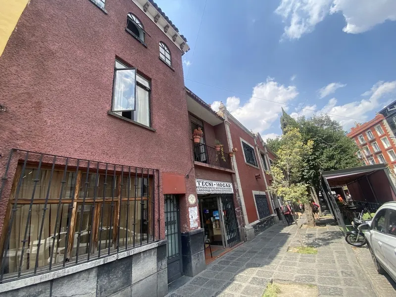 Casa en renta en el Centro de Coyoacán, a un costado de la delegación de Coyoacán. Ideal para franquicia, restaurante, notaría, banco, aseguradora, etc. Casa de tres pisos, es casa habitación y en PB cuenta con un negocio de electrodomésticos y este se va a traspasar. Hermosa casa que era parte de la casa de Hernán Cortes , en la Pb hay 2 baños 1/2, y del lado del local cuenta con otro 1/2 baño. Sala, comedor, cocina, 4 habitaciones y una hab. tiene balcón cuenta con una hermosa cúpula. Y desde arriba se ve el Centro de Coyoacán y el Kiosko. mejor vista hacia el centro de Coyoacan. únicamente el local tiene uso de suelo, la casa se tiene que sacar el uso de suelo. Esta casa se puede poner un gran negocio de restaurante o un hotel.