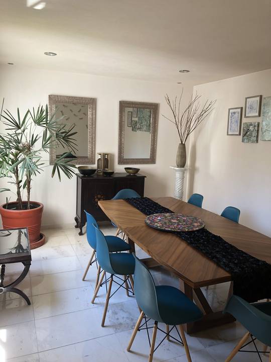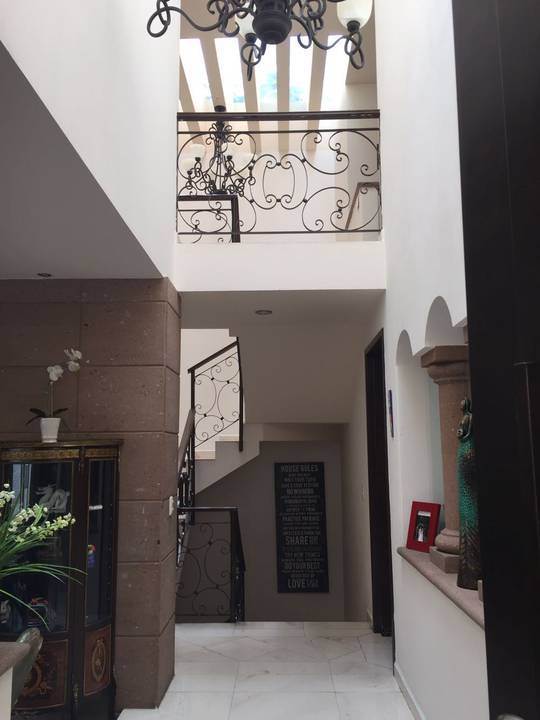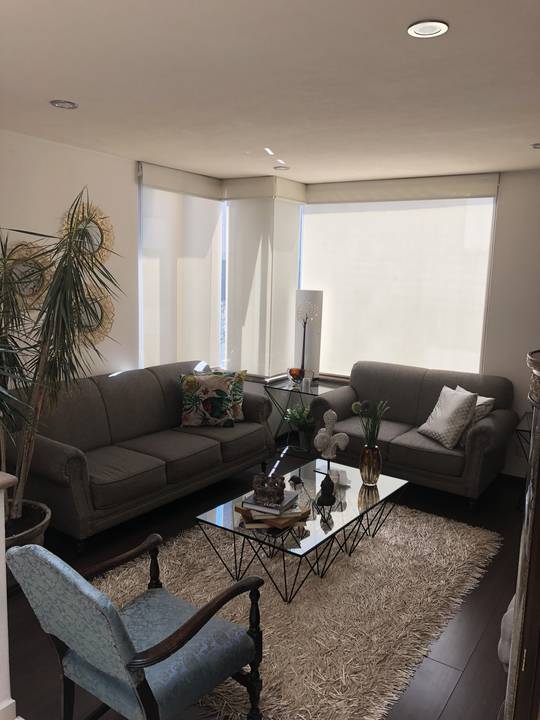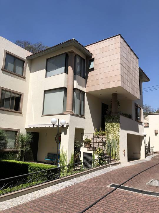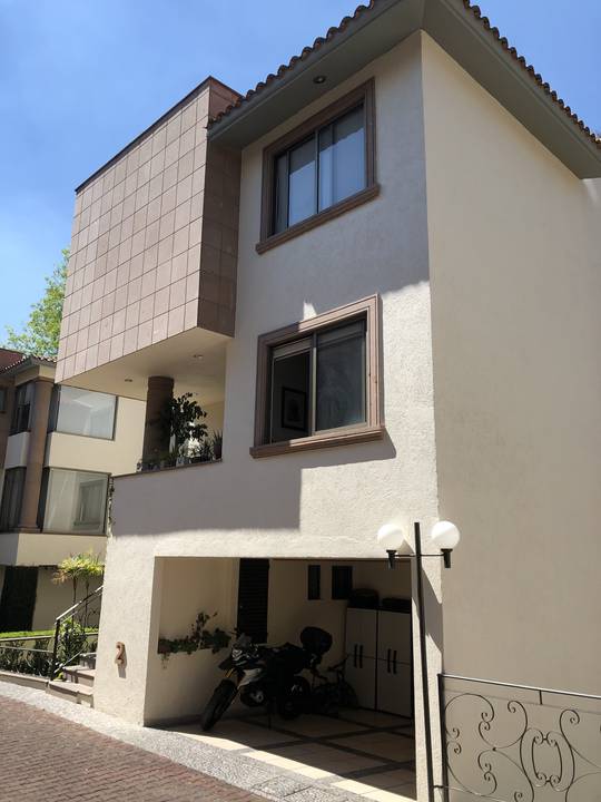 Casa en Condominio de 7 casas con salón de usos múltiples jardín común 3 recámaras 4.5 baños antecomedor lavandería cuarto de servicio sala de TV family room techos de doble altura acabados de lujo jardín privado paneles solares focos de led en toda la casa cisterna propia 3 lugares de estacionamiento gas natural vista a jardines chimenea a gas vigilancia 24 hrs circuito cerrado de cámaras portón eléctrico jardín privado con techo retractil excelente iluminación terraza con hamaca.