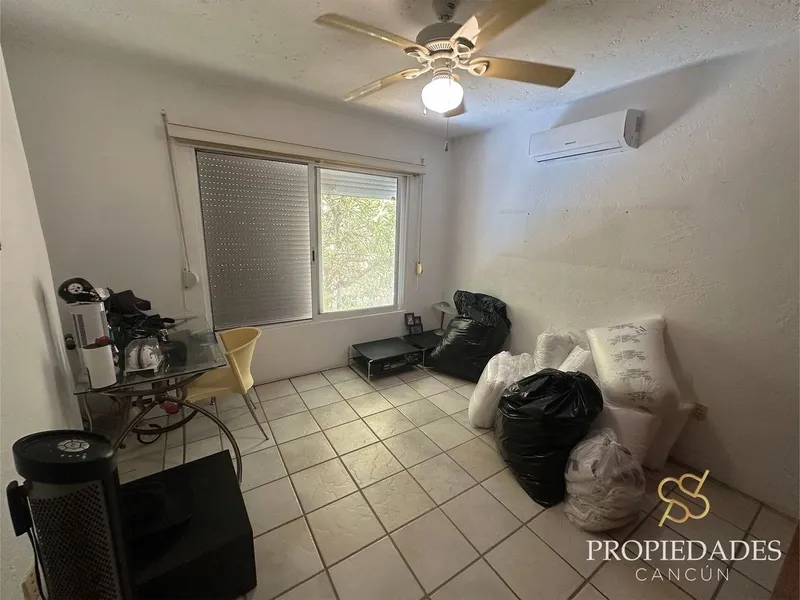 Amplia, funcional y equipada para tu comodidad Ubicada en una de las zonas residenciales más exclusivas y céntricas de *, esta casa ofrece un terreno excepcionalmente amplio, con espacios interiores bien distribuidos y un entorno ideal tanto para la vida familiar como para trabajar desde casa o recibir invitados. Planta Baja: -Gran área de sala y comedor con techo de palapa, que aporta frescura y estilo caribeño -Cocina integral con acceso al área de lavado -Cuarto de lavado independiente -Baño de visitas -Bodega bajo la escalera -Dos estudios u oficinas versátiles, perfectos para home office o habitaciones extra -Hermoso jardín trasero con alberca privada -Estacionamiento techado con capacidad para 12 autos -Cuarto de servicio con baño completo -Bodega para almacenar en el exterior Planta Alta: -Sala de TV o área familiar abierta -Dos recámaras secundarias con clóset, que comparten un baño completo -Recámara principal muy amplia, con una acogedora sala de estar privada, baño completo y excelente iluminación Extras que hacen la diferencia -Aires acondicionados en varias áreas -Cortinas anticiclónicas instaladas -Ventiladores de techo -Paneles solares para ahorro energético -Sistema de seguridad con cámaras y alarma Esta propiedad lo tiene todo: amplitud, funcionalidad, equipamiento completo y una ubicación privilegiada dentro de la ciudad. Perfecta para quienes buscan comodidad, privacidad y un entorno seguro. Contáctanos hoy mismo para agendar tu visita y conoce esta excelente opción en SM 17, *. ¡Te encantará!