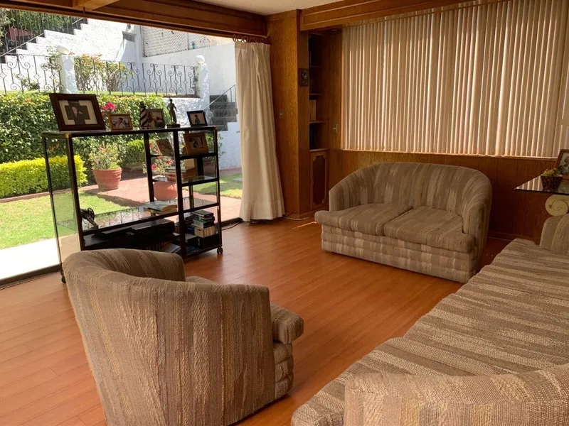 Acogedora casa en una calle muy tranquila, Bosque de Centenario. La casa cuenta con un precioso jardin que va de manera lateral todo a lo largo de la casa lo que permite tener bonitas vistas y espacios abiertos. En la planta superior se encuentra una terraza con asador y un bar con baño. La casa cuenta con cocina muy amplia con antecomedor, sala / comedor con salida a una pequeña terraza lateral, bar empotrado y estudio en la planta baja. 3 recámaras, dos baños completos y family en la planta alta. 4 lugares de estacionamiento NO INCLUYE MUEBLES