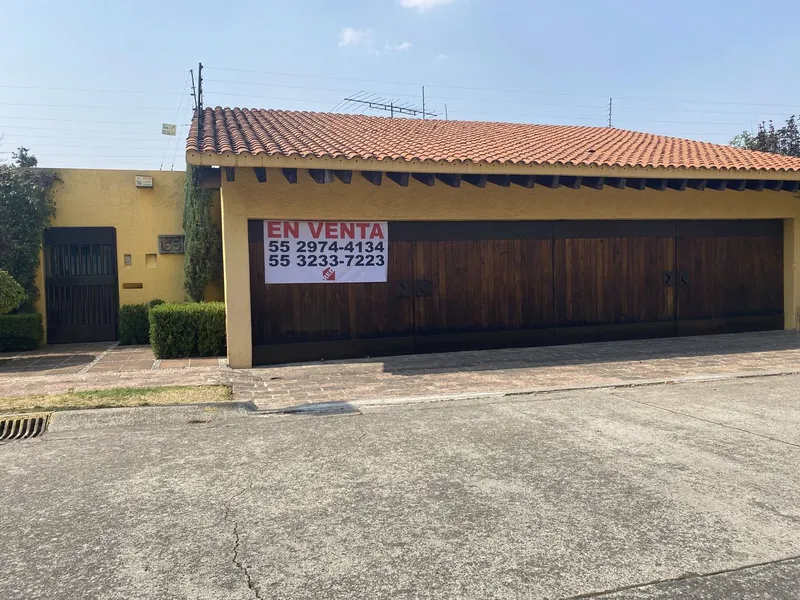 Residencia estilo mexicano moderno, diseñada por un prestigioso arquitecto. Desarrollada en 2 niveles, más un amplio salón de fiestas cerrado con acceso de entrada independiente de la casa. La casa cuenta con un estudio* con chimenea. Hermoso jardín plano con asoleadero. Terraza con asador. La casa cuenta con 2 cisternas y tinaco. Cubo para elevador con casa de maquinas que conecta desde la planta de acceso al salón de fiestas. Chimeneas, calefacción, circuito cerrado de video, portón eléctrico, interfono y conmutador de 2 lineas telefónicas. Puerta de acceso con cristal blindado.Garage para 4 autos techado. Cuarto de servicio, área de lavado y amplia bodega. La cocina es amplia y muy bonita. La casa esta ubicada muy cerca de extraordinarios colegios, bancos y supermercados. La casa esta en excelentes condiciones. El precio publicado no incluye el mobiliario que se ve en las fotos, ni gastos de escrituración e impuestos.