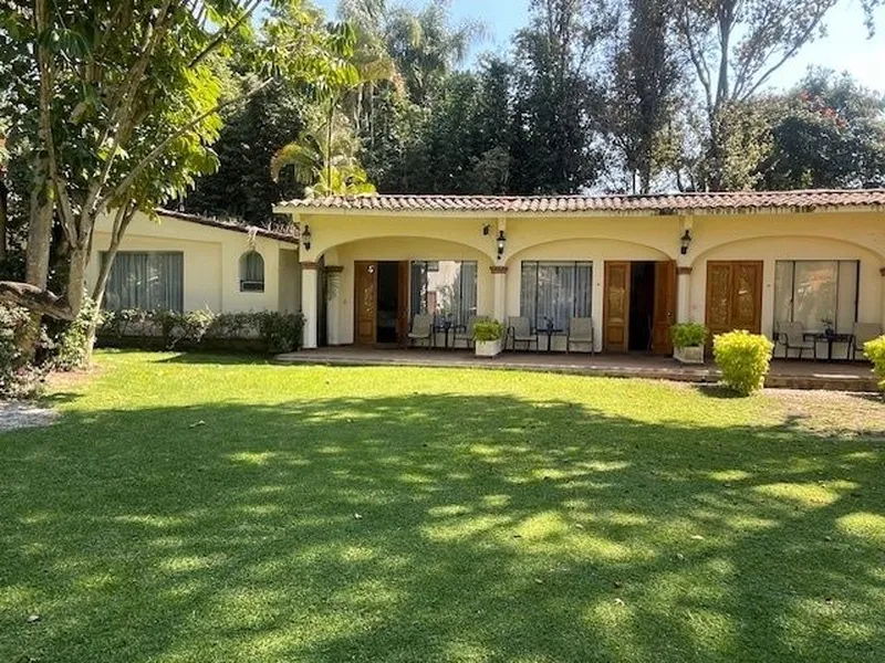 Hermosa Propiedad en el Pueblo Mágico de Tepoztlán. Ideal para familias grandes u operación como Hotel, equipado para todo tipo de Eventos sociales o empresariales (integración, capacitación, etc.) Cuenta con todos los permisos de operación y licencias vigentes. Cuenta con 12 habitaciones, totalmente amuebladas y equipadas, operando actualmente como Hotel, divididas en 3 diferentes edificios; 3 en la casa principal, 3 en casa secundaria, 1 Bungalow completo y 5 habitaciones más. Recepción, terrazas, comedor, estacionamiento para 35 autos. Capilla abierta a los jardines con vista a la Sierra del Tepozteco. Jardines con iluminación y riego por aspersión. Alberca de 194m2 equipada y funcionando; Asadores, terrazas y barras para Bar. Cocina para Eventos. Área de SPA equipada. * *