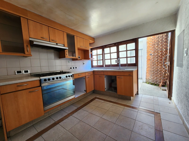Ubicada a solo dos cuadras de Av. Miguel Ángel de Quevedo, a la altura del Parque Frida Kahlo, esta propiedad ofrece espacios amplios, funcionales y con gran potencial, en una de las zonas residenciales más apreciadas de Coyoacán. Casa principal (más de 420 m² construidos) Planta baja: - Área social amplia para sala con doble altura y comedor - Grandes ventanales que permiten excelente entrada de luz natural. - Espacio iluminado adaptable como estudio o sala de lectura - Baño de visitas - Cocina cerrada, con buena ventilación y salida directa al patio de servicio - Cuarto de servicio con entrada independiente Planta alta: - Área de family room o sala de televisión - Recámaras secundarias, cada una con baño completo privado - La recámara principal cuenta con un diseño en desnivel que permite crear un espacio adicional como estudio, sala privada o área de trabajo - Incluye balcón, amplio baño con ventilación natural y vestidor Departamento independiente gracias a una pared verde natural que separa este espacio de la casa principal, ubicado al costado del acceso principal a la propiedad y distribuido en dos niveles (tapanco), cuenta con una recámara y un baño completo. Es ideal como alojamiento adicional, estudio profesional o espacio para rentar. Área exterior Espacio frontal con capacidad para hasta 5 vehículos o posibilidad de adaptarlo como jardín o terraza exterior 📍 Ubicación residencial en Coyoacán, con acceso a servicios, parques, centros culturales, escuelas y transporte. Una propiedad versátil, bien ubicada y con características que permiten adaptarse a distintos estilos de vida o necesidades familiares.
