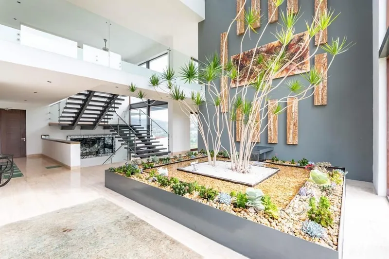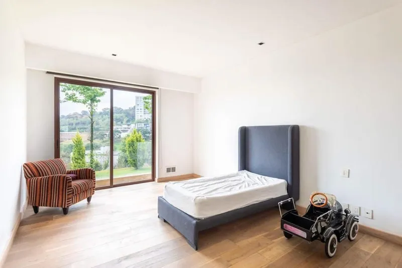 Hermosa Casa en Privada en Bosque Real Country Club Ciudad de México. Cuenta con 1500 m2 de terreno y 1496 m2 de construcción Cuenta con 5 recámaras la principal cuenta con chimenea, amplio vestidor, baño completo y jacuzzi con hidromasaje. Recámara 2 y 3 comparten baño completo, recámara 4 y 5 comparten también baño completo. Recepción Hall y Sala de TV/ Family room Sala y comedor con chimenea Cocina totalmente equipada con alacena independiente Estudio* con baño Cuarto de juegos con baño Bar equipado con cava, horno de leña para pizza y baño de visitas Porche con asador, Alberca con hidroneumático y Baño completo para esta área 4 terrazas Area de servicio: 3 recámaras de servicio, tintorería y cuarto de lavado, cuarto de máquinas, bodega, más dos bodegas en jardín Jardin privado de 350m2, más jardín colindante de 1200m2 (área común) Estacionamiento para 6 autos Nota: La residencia cuenta con diversas áreas amuebladas ya que cada mueble fue diseñado a medida de cada espacio