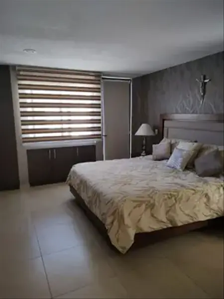 Terreno 180 m Construcción 248 m PLANTA BAJA - Garage 2 Autos techados y 2 afuera - Sala comedor, con ventanales corredizos que dan a la Terraza. - Cocina equipada con barra. - Alacena muy amplia y área de lavado. - Acceso al cuarto de servicio completo y a la Terraza. PLANTA ALTA - Pequeña sala de estar. - Recámara principal con closet y vestidor. - Baño completo, acceso a Terraza. - 2 Recámaras secundarias con closets amplios y comparten un baño completo. AMENIDADES - Cancha de fútbol empastada. - Juegos infantiles. - Terraza amplia con paraguas grandes. - Salón de reunión para 50 personas. - Baños. - Alberca, chapoteadero. Costo de la propiedad sin amueblar. Los muebles también sujetos a venta. Características · Estacionamiento techado · Facilidad para estacionarse · Garaje · Jardín · Patio · Terraza · Amueblado · Cocina integral · Cuarto de servicio · Dos plantas · Fraccionamiento privado · Portero · Seguridad 24 horas · Alberca · Área de juegos infantiles · Salón de usos múltiples