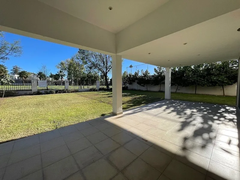 Casa en venta o renta estilo con salida al golf en Villas del Mesón. Planta baja: Recibidor Sala y comedor con vista al jardín Terraza techada Jardín (325 mts) con sistema de riego Cocina equipada con doble alacena Estudio Baño de vistas Estacionamiento para 6 autos con garaje electrico con caseta de vigilancia, Zona de baños en exterior Cuarto de servicio Cuarto de lavandería Planta alta: Recámara principal con tina y vestidor y terraza con vista al campo de golf 2 recámaras secundarias una con vestidor y baño completo con terraza con vista al campo de golf y la otra con baño completo y clóset. Generales: hidroneumático, electrificada, alarma interior, cisterna.