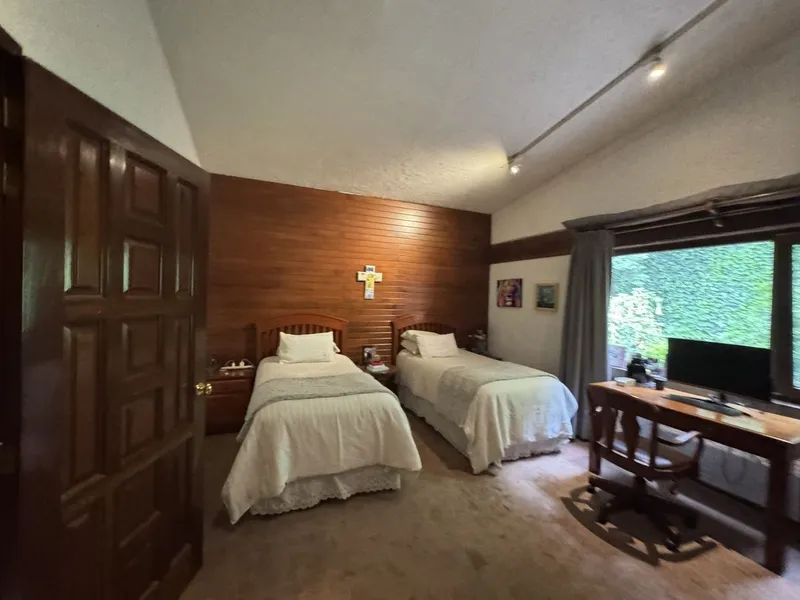 Residencia a la venta en Lomas de Tecamachalco Esta bella residencia cuenta con un amplio estacionamiento para cuatro o cinco autos, además de ofrecer muy buen espacio fuera de la misma para visitas. Cuenta con bellos acabados de madera y tiene un comedor amplio, una sala amplia, un desayunador cuarto de lavado área para atendido área para lavado, además de diversas clósets para guardar lo que se requiera. O sea, una importante área de jardín, en donde usted podrá haber realizado su proyecto, ya sea de área social o incluso de extensión de la propia casa. El área de recámaras está muy bien dividida, las cuales desde las dos recámaras secundarias y la principal tienen muy buen tamaño, y todas tienen un espacio Walking clóset de baño completo. La propiedad tiene muy bellos, acabados y se encuentra en óptimas condiciones, debido a que se le ha dado un mantenimiento de manera constante.