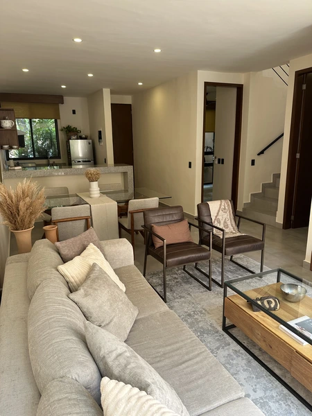 ¡No pierdas la oportunidad de vivir o invertir en uno de los desarrollos más deseados de Tulum! Esta hermosa casa ofrece el equilibrio perfecto entre lujo, comodidad y naturaleza, a minutos de las playas y principales atracciones.✨ Características de la PropiedadSuperficie de Construcción: $118 \text{ m}^2$3 Habitaciones amplias y luminosas, ideales para el *Comedor con un diseño moderno y funcional.2 Terrazas: Disfruta del aire libre y las vistas de Aldea Savia.2 Baños Completos con acabados de calidad.Cuarto de Lavado independiente.Equipamiento Incluido: Se entrega completamente equipada tal como se muestra en las fotos (¡Lista para habitar o rentar!).Comodidad Total: 4 Aires Acondicionados instalados para mantener la temperatura perfecta.🌟 Amenidades Exclusivas del DesarrolloAldea Savia te ofrece un estilo de vida de primer nivel con:Alberca refrescante para disfrutar del sol caribeño.Gimnasio (GYM) equipado para tu rutina de ejercicios.Seguridad 24/7 para tu total tranquilidad.🗺️ Ubicación PrivilegiadaDisfruta de la mejor conectividad en Tulum:A solo 5 minutos de las espectaculares playas de Tulum.A 5 minutos de la Estación del Tren Maya y del Aeropuerto Internacional de Tulum (AIFA).¡Agenda tu visita hoy mismo y ven a conocer el hogar de tus sueños en el Caribe Mexicano!