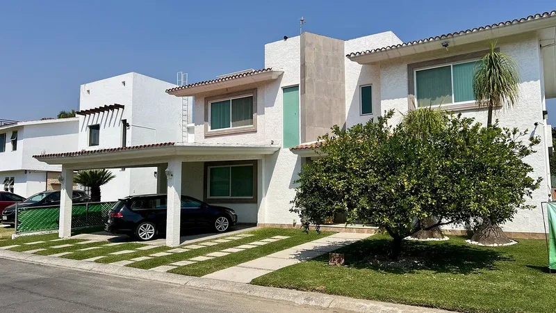 Casa en venta en fraccionamiento Lomas de Cocoyoc en Morelos, sección Volcanes. Cuenta con 537m2 de terreno y 310m2 de construcción en dos plantas. La casa tiene 5 recámaras o bien se puede adaptar a 4 o 3 recámaras según la necesidad: Recámara principal con clóset y baño completo. (Planta alta) Segunda recámara con clóset y baño completo. (Planta alta) Tercera recámara con clóset y cuarta recámara o sala de TV comparten baño completo aledaño. (Planta alta) Quinta recámara con espacio para clóset o estudio comparte baño completo con área social. (Planta baja ). Bóveda catalana en la planta alta. En planta baja tenemos además el área social de la casa donde encontramos la sala, comedor, cava, pequeña bodega y cocina integral con acceso contiguo a cuarto de lavado y cuarto de servicio. Salida a pasillo lateral con acceso a baño de servicio y/o alberca. Además en planta baja tenemos salida al jardín, pasando primero por salón de fiestas y terraza exterior. El jardín es amplio y cuenta con alberca y jacuzzi con caldera, y también acceso lateral desde la calle sin entrar a la parte interior de la casa. En total, la casa cuenta con 5 baños completos y 3 cajones de estacionamiento.