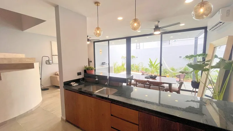 Una privada residencial con 22 exclusivas casas a la entrada de Conkal no necesitas llegar a Conkal Pueblo, encontrarás escuelas, gasolineras, supermercados, tiendas de conveniencia para que tu día a día sea más cómodo. Terreno: 177.71 Construcción: 206.68m2 Frente: 8.53 metros. Fondo: 22.22 metros. CARACTERISTICAS: PLANTA BAJA: 2 espacios para estacionamiento, pasillo de servicio, vestíbulo, medio baño de visitas, escaleras, bodega, sala, comedor, cocina, cuarto de servicios, terraza, piscina, tendedero, área ajardinada, pasillo de servicio, baño completo. PLANTA ALTA: Family room, recámara principal con clóset vestidor, baño completo y balcón, recámara secundaría 01 con closet y baño completo y recámara secundaria 02 con closet y baño completo. Este residencial te ofrece: Alberca, paneles solares, carpintería en cocina y closets, cochera techada, acceso controlado, juegos infantiles, andador central arbolado, estacionamiento para visitas. Apartado: $20,000 Enganche desde el 20% Saldo contra entrega. Fecha de entrega: marzo 2025 - 1era etapa. Formas de pago aceptadas: Créditos bancarios, recurso propio, COFINAVIT e INFONAVIT. Cuota de mantenimiento aproximada:$1,500/ mes *FOTOS DE LA CASA MUESTRA. *PRECIOS Y DISPONIBILIDAD SUJETO A CAMBIOS SIN PREVIO AVISO. *PRECIOS NO INCLUYE GASTOS DE IMPUESTOS DE ADQUISICIÓN Y GASTOS DE HONORARIOS NOTARIALES. *Los precios publicados en esta ficha son de referencia y no constituyen una oferta vinculante y pueden ser modificados por la desarrolladora en cualquier momento y sin previo aviso.
