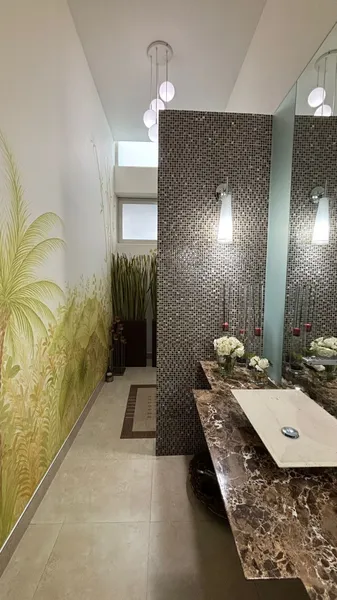 Residencia ubicada en fraccionamiento privado con caseta de vigilancia. Ofrece un alto nivel y calidad de vida por su exclusividad, increíbles vistas, sorprendentes paisajes, extensas áreas naturales, rodeado de montañas, absoluta privacidad en la zona de mayor crecimiento y plusvalía, rodeada de plazas comerciales, escuelas, universidades y hospitales. Principales Características: - Terreno: 888.17 m2 - Construcción: 1044 m2 - Frente 29.5 m2 / Fondo 30 m2 - 3 niveles - NO INCLUYE MUEBLES, SOLO SE ENTREGA EQUIPADA Planta Baja - Cochera para 3 autos - Recibidor - Sala (doble altura) - Baño de visitas - Comedor - Cuarto de Juegos - Oficina - Recámara con baño completo - Cocina con Family Room - Área de despensa - Área de asador con barra y contra barra - Lavandería - Cuarto de servicio con baño - Patio de servicio - Área de baños y regaderas - Bodega en Sótano Planta Alta - 5 Recámaras con baño completo y vestidor (2 de ellas con balcón) - Sala de Cine - Cuarto de blancos - Cuarto de limpieza Tercer Nivel - Sala con balcón - Área de Vanity - Vestidor con balcón Acabados - Ventaneria de aluminio marca Cuprum con sistema Duovent. - Puertas de madera de encino con marco envolvente de 2.40 m de altura - Placas de mármol en áreas de baño - Muebles empotrados en madera de encino en áreas sociales y recámaras. - Puertas y canceles de baño con cristal templado - Iluminación LED - Aire acondicionado en todas las áreas tipo paquete y Fan&Coil - Sistema multimedia y música ambiental - Circuito cerrado - Conmutador 2 líneas - Internet con repetidores que abarcan toda el área de la residencia - Alberca y Jacuzzi con bomba de calor eléctrica - Cisterna con sistema hidroneumático - Sistema de riego automático - Subestación 50 Kva - Celdas solares (28/470 W + 24/370 W) ¡Agenda tu cita! Oscar Lozano * Inmuebles