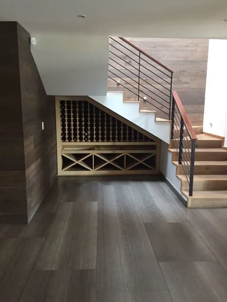 Casa estilo contemporáneo en fraccionamiento cerrado que cuenta con parque privado, cancha de futbol y ciclopista. Acabados de primer nivel en todas las áreas de la casa. Construcción: 640m, Terreno: 450m, Jardín delantero: 80m, Jardin trasero: 45m, Antigüedad: 1 año. Sótano: Estacionamiento techado para 3 autos, Cuarto de servicio, independiente de la casa para mayor privacidad,muy amplio con baño completo, 1/2 baño para chofer, 2 bodegas. Planta baja: Jardin delantero con terraza techada, Cuarto de arte con escenario para niños, Men's cave con bar y 1/2 baño (opción a convertirse en baño completo si se quiere convertir en recámara), Sala con doble altura y bar, Comedor con doble altura, 1/2 baño, Cava, Cocina con cubierta de mármol, despensa y antecomedor para 6 personas, Carril de nado techado, Jardin trasero con acceso desde men's cave, carril de nado y cuarto de lavado, Cuarto de lavado. Planta alta: Recámara principal con baño completo, vestidor y área para escritorio o sillón, Recámara 2 muy amplia con closet grandísimo y baño completo, Recámara 3 con vestidor y baño completo con tina, Family room, Cuarto de lavado con tarja y acceso a azotea. Especificaciones: Piso de madera en todas las recámaras y sala, Piso de mármol en cocina, comedor y baños, Llaves y regatearas de todos los baños Grohe , Calefacción hidráulica en toda la planta alta, Automatización de todas las luces, televisiones y sonido por Control4, Automatización de todas las persianas por EUROTRONIC, Todo controlable desde smartphone o Tablet, Circuito cerrado con 16 cámaras, Carril de nado calentado por medio de Bomba de calor y Cisterna.