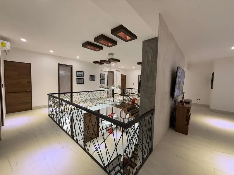 Vive rodeado de amplitud, privacidad y confort dentro de Blue Cedar, un exclusivo fraccionamiento privado conformado por solo 47 lotes, ideal para quienes buscan tranquilidad, seguridad y alta plusvalía a pocos minutos de la ciudad. Ubicado a tan solo 10 minutos de Mérida, este desarrollo ofrece vialidades completamente asfaltadas, servicios ocultos, iluminación LED y un entorno cuidadosamente planeado para elevar tu estilo de vida. Entrega inmediata Características Generales Terreno: 2,800 m² Construcción: 1,500 m² Dos niveles Cuota de mantenimiento: $6,000 Estacionamiento techado para 6 vehículos Fraccionamiento con seguridad 24/7 Distribución Inteligente Planta Baja Imponente acceso con recibidor Sala y comedor de gran formato con vistas al jardín Medio baño de visitas Cocina integral de diseño contemporáneo con isla y cubierta de granito importado Área de bar / cafetería Alacena y bodegas Cuarto de lavado Recámara de visitas con baño completo Recámara principal en planta baja con clóset vestidor y baño Terraza social de gran tamaño Alberca de 14 x 5 m con iluminación LED y fuente Bar techado, cuarto de máquinas y áreas de apoyo Planta Alta Sala de juegos o family room Cuatro recámaras secundarias, cada una con clóset, baño privado y balcón Clósets de blancos Equipamiento Incluido Fachadas con mármol travertino Sistema de riego automatizado Jardín completamente habilitado con pasto japonés y árboles frutales Aire acondicionado inverter en toda la residencia Iluminación LED integral Cortinas, mosquiteros y ventiladores Carpintería fina en madera (puertas tipo duela de maple y clósets) Pisos de madera en recámaras Alberca equipada con filtro y bombas Cocina vestida con gavetas, parrilla y accesorios de primera Suavizador de agua e hidroneumático Amenidades del Desarrollo Casa club Alberca semi olímpica Cancha de pádel Gimnasio equipado Restaurante y bar Salón para eventos o negocios Parque infantil Áreas verdes Cafetería y tiendas Acceso controlado y vigilancia 24/7 Esquema de Compra Apartado: $100,000 (reembolsable por 7 días) Enganche: 30% a firma de promesa Aceptamos pago de contado, recursos propios y créditos bancarios Una residencia diseñada para quienes buscan espacios generosos, acabados de alto nivel y un entorno exclusivo. Contáctanos para agendar tu visita.