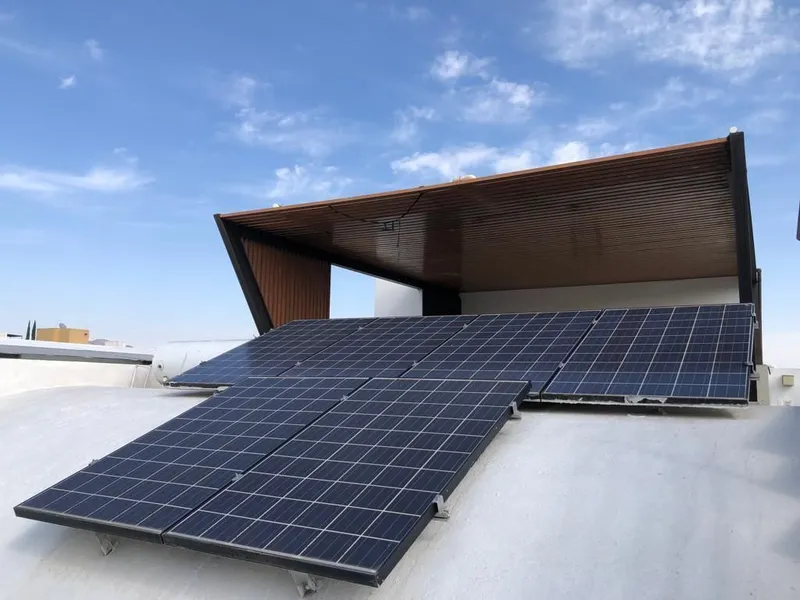Conoce esta hermosa residencia con increíbles vistas al lago. Su diseño con espacios de doble altura, un puente de acceso y acabados de gran estilo con porcelanatos, corian y tapices, es único en la zona. El exterior, con un jardín y enorme alberca automatizada con sistema de calentamiento solar, área para asolearse y chapoteadero. La arquitectura hace que la propiedad sea totalmente privada a la vista de casas vecinas, al tiempo que entrega vistas que se pierden en vegetación y el lago de Juriquilla. Cuenta con 3 recámaras, 3 baños completos, 2 medios baños, estudio, sala de TV, una hermosa terraza y un inmenso Roof top lleno de vegetación y vida, con acceso desde el exterior para tener los mejores y más grandes eventos. Todos los espacios diseñados para disfrutar sus vistas fascinantes. Una casa inteligente, con paneles solares que la hacen auto sustentable y minimiza los pagos a la CFE. Sistema de seguridad completo, iluminación inteligente y sistema de riego automatizado e hidroneumático.