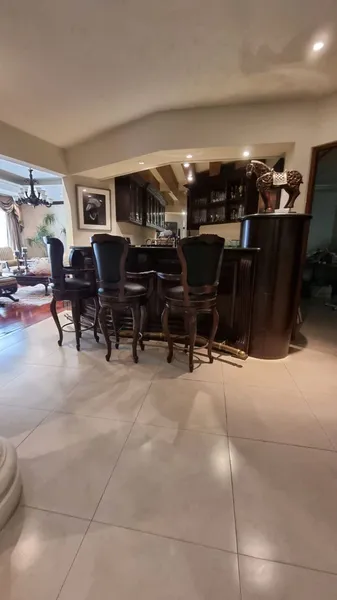 Casa en Venta en Los Colorines San Pedro Garza García; Excelente ubicación en calle privada en lo más exclusivo de la colonia. Precio de Venta: $21,500,000.00mxn Terreno: 502.17m2 Construcción: 700m2 Recámara: 3 Baño Completo: 5 Medio Baño: 2 Estacionamiento: 4 Cuenta con hermosa fachada de Cantera rosa con cochera para dos autos techada más otros dos sin techar, bodega de herramientas a nivel de calle. Acceso a amplio recibidor, bella sala con chimenea con detalles de madera de caoba y área de Bar, Amplio comedor, con plafón falso y molduras con gran detalle, Cocina con cubierta de granito en barra y paredes, muebles de madera de caoba empotrados, desayunador; sala-comedor, área de juegos integrada, provocando una amplia área de esparcimiento interior, la sala de juegos cuenta con chimenea. Lavandería y cuarto de servicio. El Terreno es descendente por lo que las recamaras se encuentran en el piso de abajo, amplia recámara principal con chimenea baño y closet vestidor. Dos recamaras secundarias cada una con su baño y closet vestidor, sala de Tv, alberca con calefacción y medio baño, Subestación Eléctrica La casa cuenta con Clima y calefacción central por separado una en la planta baja otra en la planta de arriba, cuenta también con cuatro MiniSplit, pisos de madera natural, plafones e iluminación indirecta. Total 3 chimeneas, una en la sala, cuarto de juegos y otra en recámara principal . Barandal de madera de caoba en escalera . Clave Interna: 413 Agenda tu cita al teléfono: *