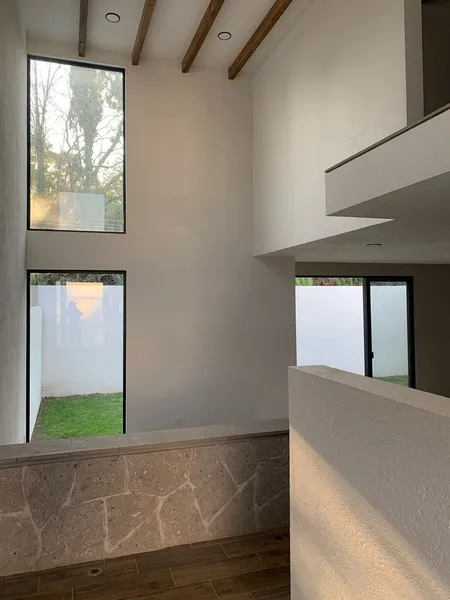 Hermosa casa nueva en conjunto privado de 10 residencias. Ubicada en el tranquilo y encantador Barrio de San Juan, en Tequisquiapan, cerca del centro. Aproveche la oportunidad de vivir en un entorno natural y exclusivo, con un gran potencial de desarrollo. 2 niveles 3 recámaras amplias con vestidor 3 baños completos Sala Comedor Cocina integral Estudio Area de lavado Jardín privado 2 lugares de estacionamiento independientes Cisterna de 6 mil litros Amenidades: alberca y asador común Terreno: 190 m2 Construcción: 160 m2 Tramitamos su crédito hipotecario con las principales instituciones bancarias del país. Programe una cita hoy mismo con uno de nuestros asesores. Opciones similares en nuestra página web: *