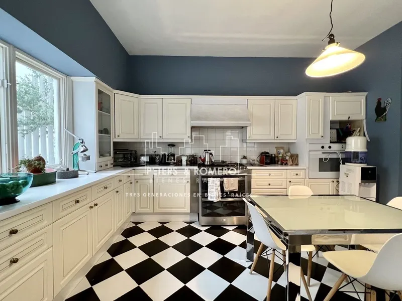 Esta lindísima casa cuenta con amplios espacios abiertos y techos altos que la bañan de luz. Todos sus ambientes tienen vista arbolada. En la planta alta se encuentran la sala y comedor con dos terrazas y la cocina. En la planta baja están tres recámaras, cada una con baño privado y una biblioteca revestida en madera, un home gym, un family y un área para leer que da hacia su jardín en este mismo nivel. En la planta baja se encuentra además un cuarto de juegos de 120m2, con acceso a otro jardín, desde donde podrás bajar a otros dos jardines construidos en desniveles. Con 1105m2 de terreno y un total de 646m2 habitables es una gran propiedad en este exclusiva zona. This beautiful house features spacious open areas and high ceilings that fill it with light. On the upper floor, you'll find the living and dining rooms with two terraces and the kitchen. On the lower floor, there are three bedrooms, each with its private bathroom and view of the adjacent forested area. On this level there’s a wood paneled library, a home gym, a family room, and a reading area overlooking the garden. Additionally, the lower floor of the home has a 120m2 game room with access to another garden, leading to two more gardens on lower levels. With 1105m2 of land and a total of 646m2 of living space, it's a wonderful property in an exclusive neighborhood. -El precio y la disponibilidad pueden cambiar sin previo aviso. -El precio publicado no incluye gastos de escrituración ni impuestos. -Los muebles y decoraciones se muestran con fines ilustrativos y no están incluidos en el precio.