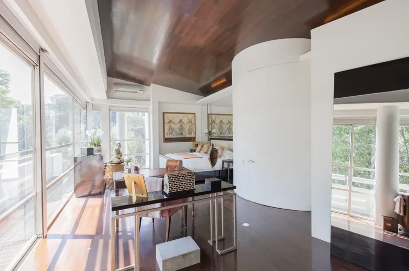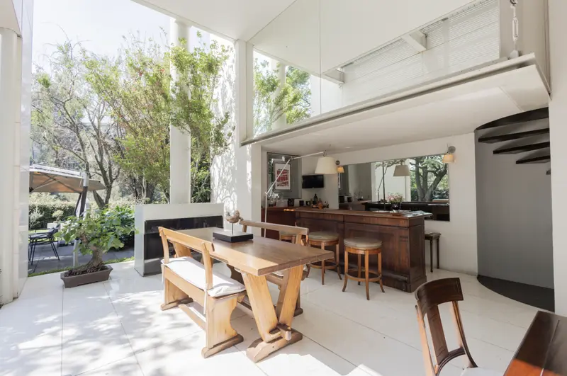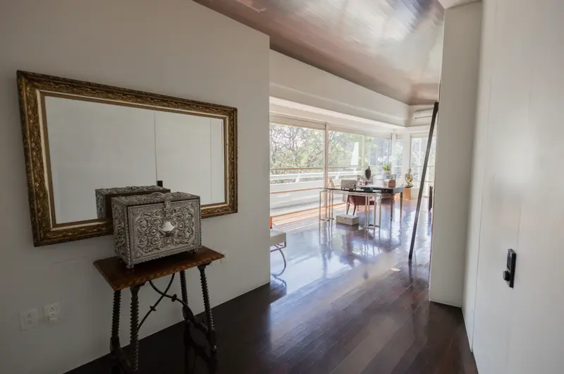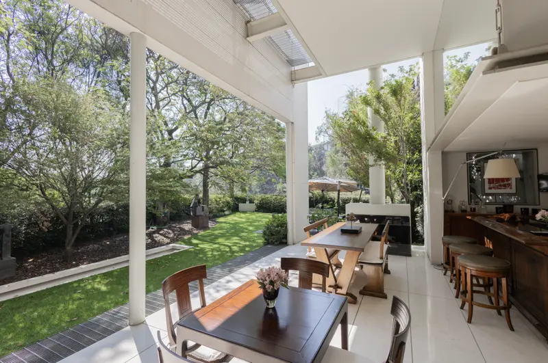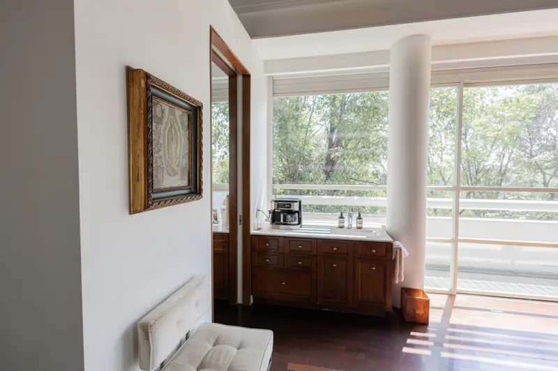 Residencia de lujo en Lomas Altas con espectaculares vistas a zona federal arbolada que garantizan privacidad y un entorno natural inigualable ubicada a solo 8 minutos de Lilas y Arcos Bosques, 15 minutos de Polanco y 4 minutos de Paseo de la Reforma. Esta propiedad combina una ubicación estratégica con un diseño arquitectónico de primer nivel realizada y supervisada por el reconocido arquitecto Mauricio Gómez de Tuddo, se distingue por sus acabados de alta gama como madera Wengé una madera tropical exótica de gran dureza y tono oscuro así como piedra caliza en pisos y fachada interior que aportan elegancia y carácter. Con un terreno de 1147 m² y una construcción de 1312 m² distribuidos en tres niveles, cuenta con tres recámaras, tres baños completos, cinco lugares de estacionamiento y espacios amplios y funcionales además ofrece gimnasio, ludoteca, jardín, terraza y seguridad 24 horas lo que la convierte en una residencia única que combina confort lujo y una vista privilegiada en una de las zonas más exclusivas de la ciudad