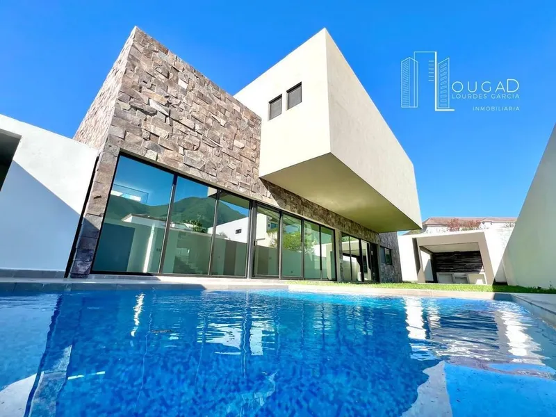 **CARRETERA NACIONAL, CASA NUEVA EN VENTA CON ALBERCA, EN CLUB DE GOLF LA HERRADURA MONTERREY, NL Precio $ 30,500,000 Situada en uno de los fraccionamientos más exclusivos de Monterrey, que cuenta con un club de golf de prestigio, esta propiedad ofrece vistas panorámicas impresionantes de las montañas. Disfruta de una sofisticada área social con alberca y un diseño paisajístico cuidadosamente elaborado. La residencia se distingue por su estilo contemporáneo y refinado. 677 m2 de Terreno. 578 m2 de Construcción. Características: *Dos Niveles *Cuatro Recamaras con walking-closet y baño. * Sala Comedor * Estancia * 4.5 baños * Recibidor * Cocina integral con family room. * Area de estancia. *Cochera para 4 autos. *Bodegas *Lavanderia *Cuarto de Servicio con entrada independiente. *Zinc. *Closets de blancos. *Cisterna Amenidades: -Area social con alberca. -Jardin. -Terraza. Planta baja: -- Recibidor. -Área de sala, comedor. - Cocina integral - Área de antecomedor. - Family room. -Cochera para 4 autos o más.. - Bodegas - Área de lavandería. - Cuarto de servicio amplio con baño completo con entrada independiente. Area social - Jardin de 200 m2. - Alberca equipada. - Palapa con asador. - Baño completo en el jardín. Planta alta - 4 Recamaras cada una con baño y vestidor. - Estancia familiar. - Terraza de 43 m2. - Area de lavanderia. Equipamiento de la casa: - Pisos de marmol santo tomas en placas formato grande. - En recamaras y vestidores duela natural de maderas torres. - Ventanas de pvc europeas duovent con low-e marca glaswelt- - Climas centrales fan &coil seccionados por areas (son 9 equipos: 4 en recamaras, 1 estancia familiar,1 cocina,1 sala y comedor y 1 en estudio y 1 mini split en cto de servicio). - Puertas de encino y vestidores en las 4 recamaras. - Placas de granito negro san gabriel en los lavabos. - Iluminacion en toda la casa. - Palapa con asador y baño. - Alberca equipada. - Jardines con cesped y sistema de riego. - Cocina marca doma design, incluye: parrilla, campana, horno y micro. * Fraccionamiento privado *Seguridad 24 horas Con doble caseta de seguridad. *Mantenimiento mensual: 2500