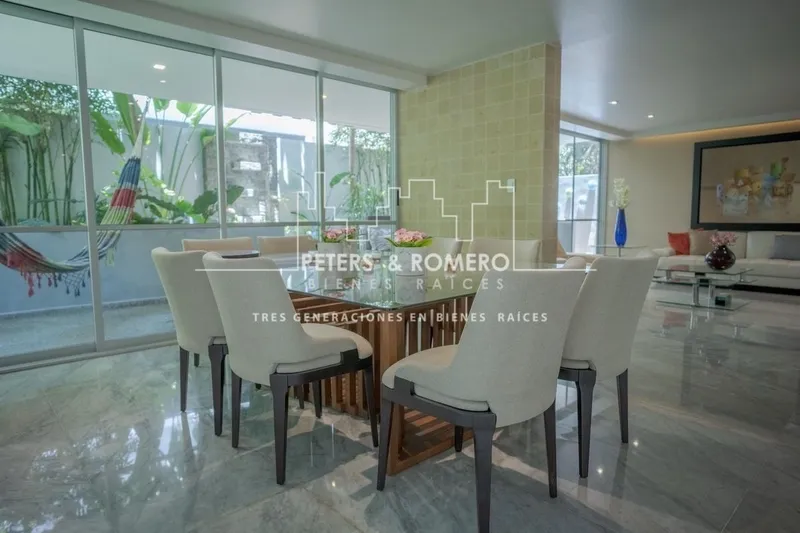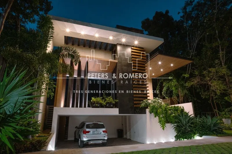 Vive en uno de los desarrollos más exclusivos y atractivos de Playa del Carmen en esta estupenda residencia en dos niveles. Ubicada en Ciudad Mayakobá, a tan solo 5 minutos de la playa en un conjunto residencial con excelente seguridad. La casa tiene una sensacional arquitectura contemporánea. En la planta baja cuenta con una amplia y fresca terraza rodeada de un jardín tropical. Su área social tiene concepto abierto con una moderna cocina totalmente equipada y bonitas vistas a la terraza desde su sala-comedor. Pisos de mármol italiano y mini-splits en diversas zonas de la casa. En su área privada se encuentran sus cómodas recámaras con baños privados y un estudio que puede ser una cuarta recámara. La terraza del segundo nivel es un verdadero oasis, con su confortable sala, cocina exterior y jacuzzi con capacidad para 6 personas. Ideal para reuniones con la familia y amigos. Dentro de la privada donde se ubica la casa hay un cenote, con todos los atractivos que ello ofrece. No dejes de conocer esta maravillosa casa, que puede ser el hogar de tus sueños! * El precio y disponibilidad está sujeto a cambios sin previo aviso * * El precio anunciado es más gastos de escrituración e impuestos * * Los muebles y decoraciones son soló con fines ilustrativos, no van incluidos en el precio *