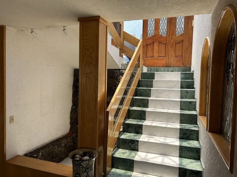 Muy buena casa al Sur de la Ciudad en buenas condiciones, tiene una terraza con asador, tarja y baño, un bello jardín con arboles frutales, al fondo un gimnasio con baño. Cuenta con 4 recámaras cada uno con baño y jacuzzi, 2 recámaras comparten baño, lugar de estacionamiento para 5 autos techados. Un departamento independiente con cocineta, estancia, recámara y baño. Tiene un salón para eventos con vista espectacular de la CDMX, cocina, baño con jacuzzi y bar. La planta principal cuenta con una amplia estancia de sala, comedor, estudio y medio baño, cocina integral con desayunador y una gran despensa, cuarto de servicio con baño, bodega y área de lavado. 2 cisternas de 45,000 litros. Ubicada a 4 kilómetros de Insurgentes Sur y Viaducto, Centro de Tlalpan, comercios, bancos y restaurantes. *ABIERTOS A NEGOCIAR*