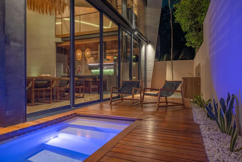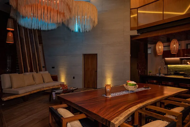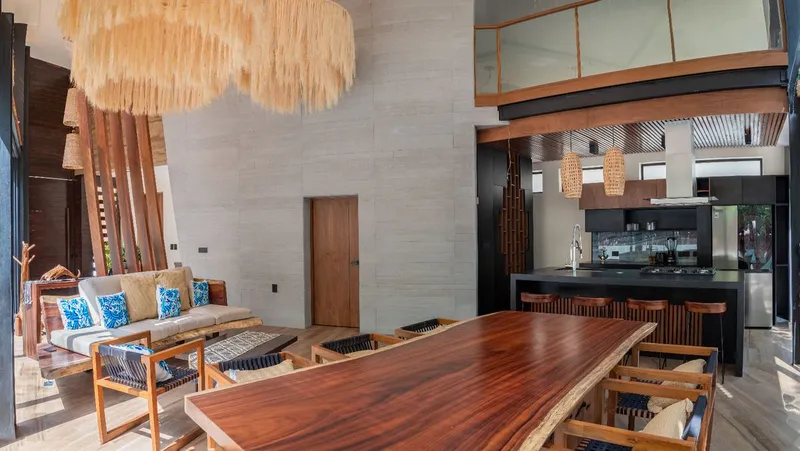 Lujo, diseño y naturaleza en Senderos de Mayakoba Descubre Casa Elefante, una residencia totalmente amueblada y equipada, única que combina elegancia arquitectónica, materiales nobles y tecnología sustentable en el exclusivo fraccionamiento Senderos de Mayakoba. • Totalmente amueblada y equipada con muebles y utensilios de la más alta calidad. • 5 recámaras, incluyendo recámara principal con walk-in closet, tina y terrazas privadas. • Recámara de visitas en planta baja con diseño accesible. • Cuarto de servicio con baño y área de lavado • Dobles alturas en planta baja y primer nivel. • Estructura mixta de acero y concreto con sistema Novidesa para aislamiento térmico. • Acabados en maderas tropicales como Tzalam, Jabin y Ciricote. • Pisos y muros con porcelanato Firenze y acabado Chukum. • Cancelería de alta gama. • Alberca con recubrimiento venecianos. • Equipamiento de lujo: sistema inteligente Bticino, iluminación en acero y fibras naturales, aire acondicionado inverter y mobiliario en madera de parota. • 3 lugares de estacionamiento. • Paneles solares • Escultura exclusiva de piedra caliza: el elefante que da nombre a esta casa única. Una residencia sofisticada, funcional y en armonía con el entorno natural. Vive la experiencia Casa Elefante.