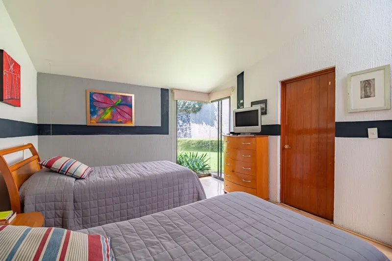 No. de cuenta predial: * Uso de suelo: H/2/40 3 viviendas permitidas, 811 m2 sup. max. de construcción. Descubre está increíble residencia perfecta para habitar o desarrollar un condominio horizontal, está propiedad ofrece una ubicación privilegiada colindante al exclusivo Club de Golf México. La propiedad despliega su encanto a través de un diseño de un solo nivel, un extenso jardín y una acogedora terraza. Consta de 3 habitaciones con ventanales de piso a techo con vista y acceso al jardín, todas con baño, la principal con vestidor. Estancia sala-comedor con techos altos, vestíbulo, sala de t.v., cocina, ante comedor, cuarto de servicio completo, área de lavado, 3 estacionamientos. Lo único que se encuentra en el 2 nivel es un estudio de excelente tamaño ideal para home office. Está propiedad presenta una fusión única de lujo y comodidad, es el escenario ideal para quienes buscan un estilo de vida relajado inmersos en un entorno natural y exclusivo. Contáctanos y permítenos llevarte a tu NUEVO HOGAR. * * Aviso de privacidad, así como quejas, sugerencias visita nuestro sitio web o comunícate con nostros. No incluye el mobiliario mostrado en las fotografías. El precio es más gastos e impuestos de escrituración.