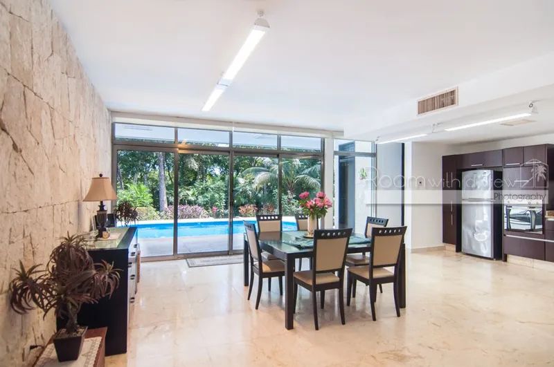 Residencia en la Selva con Alberca y Cenote Ubicada en el residencial selvático de Rancho Santa Teresita, esta propiedad ofrece la combinación perfecta entre privacidad, comodidad moderna y belleza natural. Cuenta con dos casas renovadas, cada una con 2 habitaciones y 2 baños, lo que la convierte en una excelente opción para un retiro multifamiliar, una renta vacacional o una propiedad de inversión. Rancho Santa Teresita es una comunidad única que brinda servicios esenciales como electricidad, internet, seguridad 24 horas y recolección de basura, todo en un entorno de selva apartado, a solo minutos de las impresionantes playas de Xpu Ha y de las amenidades de Puerto Aventuras y Akumal. Diseñadas para ofrecer confort y funcionalidad, ambas casas ofrecen un diseño de planta abierta, cocinas totalmente equipadas con isla y luminosas áreas de sala y comedor que se extienden hacia terrazas techadas. Las habitaciones tienen vestidores, y el baño principal destaca por su amplia tina de hidromasaje. En el exterior, encontrará una gran alberca en el jardín con asientos integrados, un cenote privado y un rooftop con alberca tipo plunge, una palapa y una cocina al aire libre. Toda la propiedad está cercada y cuenta con un portón de acceso con control remoto, brindando seguridad y privacidad para usted y sus huéspedes. - Vista a la Selva - Alberca en el Jardín - Patio Interior - Terraza Techada - Rooftop - Alberca en Rooftop - Cenote Privado - Cercado de Seguridad - Mascotas Permitidas - Amueblado - 10 Espacios de Estacionamiento Contáctenos hoy mismo para más información. Propiedad ID: *