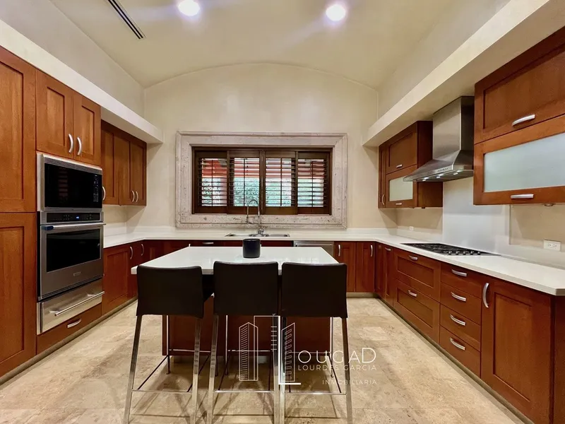 CARRETERA NACIONAL, CASA EN VENTA EN LAS ESTANCIAS RESIDENCIAL, CON RECAMARA EN PLANTA BAJA. $48,500,000 850 m² de construcción 1,050 m² de terreno - Recibidor -3 Recamaras, la principal en planta baja cada recamara con baño y vestidor -Estancia - Estudio - Sala Comedor Bar - Area social con estancia, terraza, jardín - Amplia cocina equipada. Alacena - Oficina biblioteca - Lavanderia y cuarto de servicio PLANTA BAJA: - Recibidor. - Doble sala con salida al jardin, con chimenea - Comedor, Bar - Cocina equipada con parrilla campana, torre de hornos, refrigerador subzero, lavavajillas, y enfriador de vinos - Oficina con biblioteca. - Medio baño - Recámara principal con estancia, baño y vestidor - Terraza y Jardin PLANTA ALTA: - 2 Recámaras cada una con walk in closet y baño completo. - Cuarto de TV. - Gimnasio. - Balcón con jacuzzi. - Closet de blancos, zinc EQUIPAMIENTO: - Piso de mármol gran formato , duela natural en recámaras. -Muebles empotrados - Terraza con vigas de madera. Iluminación, plafones, ventanas de vidrio duovent con marcos de cantera - Sistema inteligente , sonido ambiental - Doble muro con aislante térmico. - Aire acondicionado seccionado (total 28 toneladas), - Cisterna de 15,000 lts. con equipo hidroneumático. - Subestacion Electrica - Puertas sólidas de caoba - Bodegas. - Lavandería y cuarto de servicio. - Baño para chofer. - 3 Boilers - Sistema de riego - Tranformador kva - Chimenea con tiro - Fuente Fraccionamiento con control de acceso, cuenta con gimnasio, salón de eventos y áreas verdes. *Los muebles pueden venderse por separado Diseñada por el Arq. Pepe Ortiz y decoración Coni Mendez y Maruca