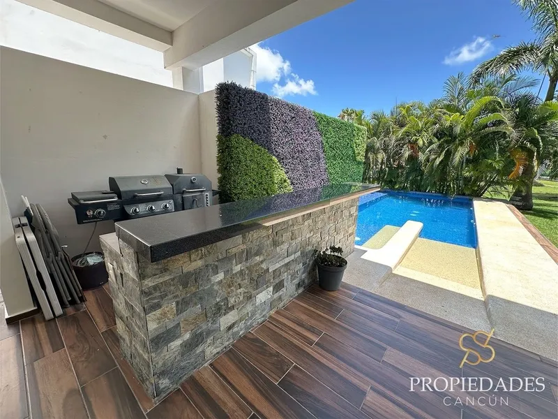Ubicada dentro de Lagos del Sol, uno de los residenciales más exclusivos de *. Con seguridad 24/7, lagos de agua dulce, casa club de primer nivel y más de 30 amenidades que elevan tu calidad de vida. Planta baja Estacionamiento techado Sala y comedor con excelente iluminación natural Cocina integral con diseño funcional y acabados de calidad Terraza techada ideal para reuniones al aire libre Jardín amplio con vista a la alberca Alberca privada con baño completo para mayor comodidad Cuarto de máquinas Bodega para almacenamiento Baño de visitas Cuarto de servicio con baño completo y acceso independiente Área de lavado separada Área de TV o estudio en planta baja Planta alta Cuarto de TV o sala familiar 2 recámaras secundarias, cada una con clóset y baño completo Recámara principal con: Walk-in closet Baño completo Espacio amplio y privado Beneficios del residencial Lagos del Sol Acceso a lagos navegables de agua dulce Casa club con alberca semiolímpica, canchas, gimnasio y spa Seguridad 24/7 con acceso controlado Ciclopista, parques y zonas verdes Excelente conectividad con aeropuerto, escuelas y centros comerciales