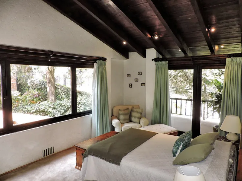 Si te gusta el estilo colonial campestre, en un entorno con seguridad, rodeado de bosque, aire puro, paz y tranquilidad en la ciudad, esta hermosa residencia es para ti. Proyecto del Arq. Artigas; en Tenis San Francisco está tu próxima residencia: con finos acabados, canteras, madera tallada, hermosas vigas de madera, amplios ventanales que brindan iluminación natural, terrazas y vistas a tu jardín arbolado. Espacios amplios y doble altura, recibidor, sala con chimenea, comedor con un lindo bar, despacho o estudio, amplia cocina, desayunador y salida a un área abierta para esas reuniones y carnes asadas. Cuenta con tres recámaras muy iluminadas con terraza cada una, la principal con vestidor abierto, baño con jacuzzi y ducha, wc y bidet por separado y un gym, la segunda recámara tiene baño, closet y cuenta con un gran tapanco, la tercera recámara tiene baño y closet, family que conecta a las recámaras para disfrutar tardes de películas o juegos con tu familia. Además cuenta con cuarto de servicio, área de lavado y patio, calefacción central a gas, cisterna y estacionamiento techado para dos autos. Tres canchas de tenis y circuito para caminar, como áreas comunes. Agenda un cita, ¡te encantará!