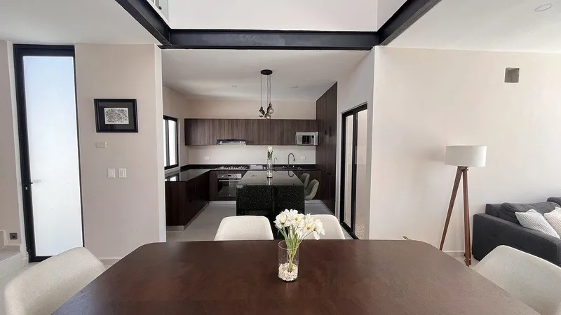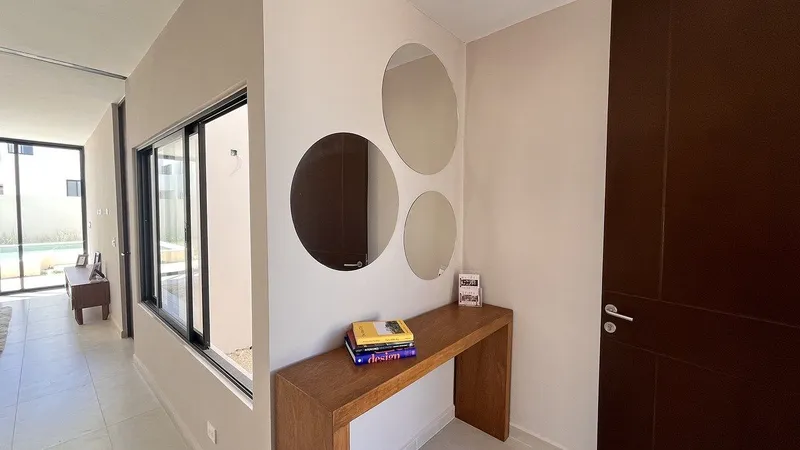 Ubicada al norte de Mérida Yucatán en una zona consolidada de alta demanda, estas viviendas están perfectamente conectadas con la ciudad a través de vialidades primarias y se encuentran a pocos minutos de escuelas, hospitales, centros comerciales y áreas centrales. 3 minutos de la UADY. 5 minutos de periferico. 12 minutos de la Plaza Altabrisa. 17 minutos del hospital Faro del Mayab. AMENIDADES: Bar, gimnasio, playroom, área de juegos infantiles, cancha de usos múltiples, pista de jogging, alberca, terraza, área verdes, seguridad 24/7 con circuito cerrado de vigilancia. INFRAESTRUCTURA: Preparación para fibra óptica. Calles de concreto hidráulico. Red de drenaje sanitario. Privada con acceso controlado. Sistema de agua potable. Amenidades. Acceso por amenidades. Barda perimetral. Construcción: 176m2 Terreno: Frente: 10m x Fondo: 30m PLANTA BAJA: Cochera para dos autos. Sala. Comedor a doble altura. Cocina con alacena. Jardín interior. Bodega. Área de lavado. Baño de visitas. Alberca. Barra para asador. Terraza. Pasillo lateral de servicio. 1 recámara con baño y closet vestidor. PLANTA ALTA. Closet de blancos. Área de estudio o home office. Segunda recámara con closet vestidor y baño completo. Tercera recámara con closet vestidor, baño completo y terraza. EQUIPAMIENTO INCLUIDO. Granito en cocina. Pisos de gran formato. Muebles bajo el lavabo. Canceles de baño. Calentador eléctrico. Presurizador de agua. Gabinetes inferiores y superiores en cocina. Isla en cocina con carpintería. Closet vestidor con carpintería en todas las recámaras. Alberca. Preparación para aires acondicionados. Jardín. CASA PARA ENTREGA INMEDIATA. Agenda una cita y conoce tú próximo hogar. DISPONIBILIDAD Y PRECIOS SUJETOS A CAMBIOS SIN PREVIO AVISO. CONSULTAR DISPONIBILIDAD