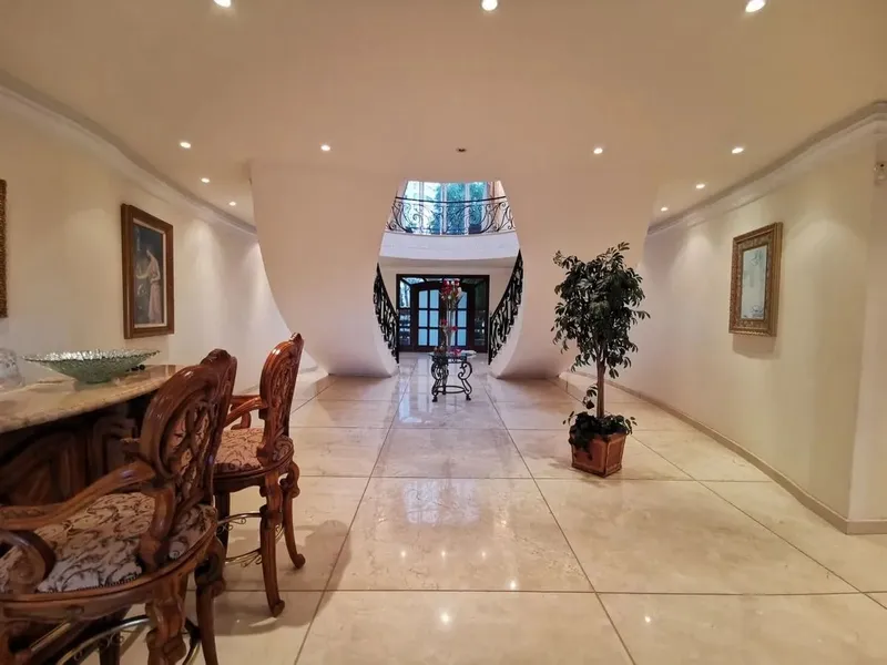 EXCLUSIVIDAD Y VISTAS DE ENSUEÑO. Espectacular casa con arquitectura imponente y vestíbulo de doble altura en el Residencial más exclusivo de Interlomas. Ubicación privilegiada frente a la Casa Club. Acabados de lujo, mármol y espacios amplios. 4 Recámaras con vestidor, baño completo y terraza privada. Gran recámara principal con sala de doble altura. Family Room, Oficina, y amplios salones con vista a los jardines que rodean la casa. Equipada con Calefacción y A/C. El fraccionamiento ofrece seguridad 24/7, lagos, patos y áreas verdes. VENTAJA ÚNICA: Incluye Membresía al Club con albercas, gimnasio, canchas de tenis/pádel y más