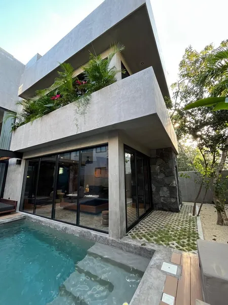 Bienvenidos a su nuevo hogar en él vibrante corazón de Tulum. Esta espectacular casa con doble altura y alberca privada esta ubicada en la cerrada "La privada" la cual se encuentra en aldea Zama Tulum. La casa cuenta con: 3 Pisos c* 3 Recamaras 4.5 Baños Cuarto y Baño de Servicio Cocina totalmente equipada Llave en mano; se entrega equipada y amueblada Lavadora / Secadora Piscinas privadas en planta baja y azotea Paneles solares 375 m2 de terreno 360 m2 de construcción Cuenta con casa club en la privada gimnasio canchas de pádel
