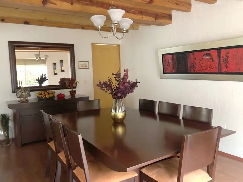 Te presentamos una excelente den la parte baja de Cuajimalpa. Con una superficie de 244 metros cuadrados, esta casa cuenta con una distribución y comodidades ideales para aquellos que buscan un espacio amplio, cómodo y funcional. Al ingresar a la propiedad, serás recibido por una entrada hall, con medio baño para visitas, seguido del comedor y sala con vista al jardín que brinda una sensación de frescura y tranquilidad. Al entrar a la casa, te sorprenderás con la amplitud de sus espacios. En el nivel de la recámaras encontramos un estudio de tv y cuenta con 3 recámaras, Además, todas las recámaras están diseñadas para brindar comodidad y privacidad y cuentan cada una con baño completo y vestidor. La sala y el comedor son espacios muy bien iluminados. La cocina cuenta amplio espacio y despensa, lo que la convierte en el lugar ideal para desplegar tus habilidades culinarias. Además, cuenta con un antecomedor. Una característica adicional de esta casa es el cuarto de juegos con baño completo muy amplio o puede ser una 4 recamara, que brinda la posibilidad de tener un espacio privado sin tener que salir de casa, con una entrada independiente. Este espacio adicional es ideal para profesionales independientes o aquellos que necesitan un lugar tranquilo para llevar a cabo sus actividades laborales. La casa cuenta con 4 cajones de estacionamientos techados. Cuarto de servicio con baño completo. Lavandería