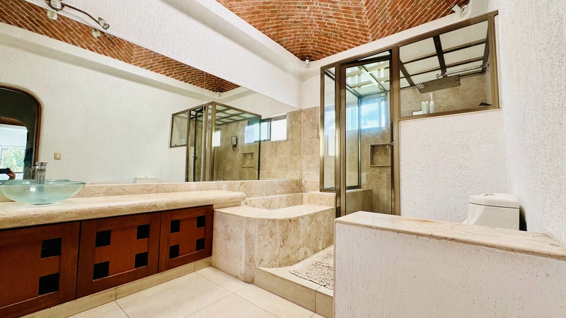 Residencia en Villa Magna, uno de los condominios de lujo consolidados en la ciudad de Cancún. La casa está construida en dos plantas, con diseño colonial, techos altos de bóveda catalana, luz natural como una constante en toda la construcción, pisos cerámicos, barra de granito en cocina, cancelería con cristal de 9 mm, carpintería de madera sólida, acabados de mármol en todos los baños, cisterna de 27,000 m3 y 15 páneles solares. Distribución en planta baja: Amplio recibidor, baño de visitas, closet–bodega, cuarto de T.V. con baño propio que funciona como recámara adicional. Comedor amplio, sala en desnivel, cocina con acceso al área de lavandería, al cuarto de servicio con baño y al pasillo de servidumbre. Amplio jardin con alberca volcánica sin cloro (natural pool), y pecera natural con fuente. El área exterior cuenta con iluminación y bellos árboles frutales. Distribución en segundo nivel: Amplio espacio versátil que funciona actualmente como estudio. La recámara principal con techo de bóveda catalana y amplio baño con luz natural y sistema de sonido integrado. La recámara secundaria con técho de bóveda catalana, amplia terraza, walk–in closet y amplio cuarto de baño con luz natural.