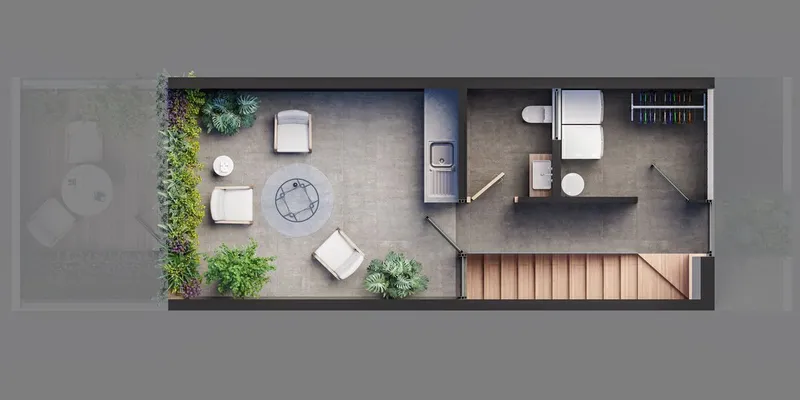 Consta de 10 espectaculares Town Houses de cuatro niveles y Roof top. Townhouse interior. En primer nivel tiene cocina, comedor, estancia, terraza y un medio baño. Family Room en segundo nivel. Tiene 3 habitaciones, la principal un baño completo y walk in closet , otro baño completo. Área de lavado y medio baño en azotea y roof garden. 2 lugares de estacionamiento Bodega de 5 m2 151.4 m2 habitables 10.7 m2 de terraza 19.9 m2 de roof garden 182 m2 totales Todo el conjunto cuenta con vigilancia en la recepción. Para mayor comodidad del usuario y sus visitas, el desarrollo cuenta con un elevador que va del sótano al patio central y finalmente a las terrazas en el quinto nivel. Entrega aproximada: Mayo 2026