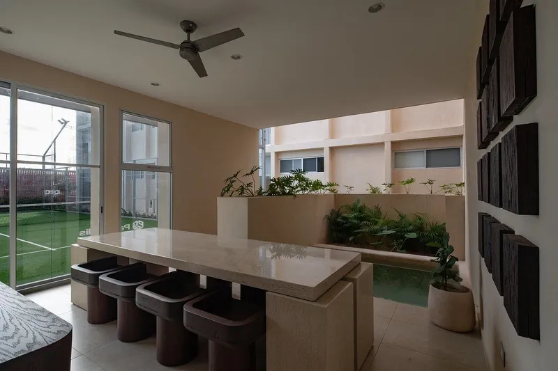 Teana es un desarrollo de 45 departamentos con 3 diferentes modelos a elegir. Ubicado en Temozón Norte, en la ciudad de Mérida, Yucatán. El desarrollo cuenta con una ubicación privilegiada cerca de universidades, centros comerciales, hospitales y diferentes servicios. MODELO C Sala-comedor. Cocina. 1/2 baño. Recámara principal con área de closet vestidor y baño. Segunda y tercera recámara con baño. Área de closet de blancos. Piscina (Solo en PB). EQUIPAMIENTOS & GENERALES Cancel de aluminio linea 3 color natural. Puertas de encino o similar. Mesetas de granito en cocina. Piso de ceramica de formato grande. Mesetas de marmol en baño. Acabado en yeso. Cajones techados con mallasombra. Celosia segun diseño. AMENIDADES Terraza social con piscina Bar social Espacio co-work Vigilancia 24/7 Cancha de padel Cajones de estacionamiento CUOTA DE MANTENIMIENTO: $1800 MXN ENTREGA: inmediata METODO DE PAGO Apartado $20,000 devolutivo durante 7 días. Enganche:desde 15% (verificar el porcentaje de cada nivel con un asesor) *Precio sujeto a cambio sin previo aviso **El precio no incluye los gastos de escrituración, avalúo, ni cuotas de mantenimiento. ***Todas las ilustraciones son una representación gráfica para formar una imagen cercana al producto final, la cuales podrían tener ajustes o modificaciones. Las decoraciones, muebles, luminarias y accesorios utilizados no están incluidos en la entrega, a menos que se estipule por escrito que son parte de la entrega final