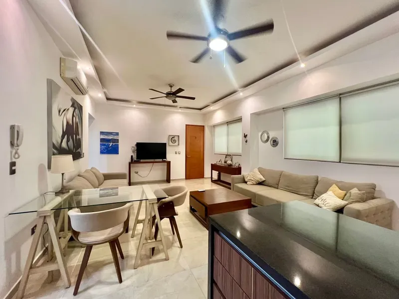 Departamento de 1 recámara "llave en mano" en venta en el centro de Playa Del Carmen Ubicación: Menesse 25/26, Avenida 25 Norte con 26 Norte, Col. Gonzalo Guerrero, Playa del Carmen Referencias: 6 minutos a pie de la 5ta Avenida Superficie total: 111.57 m2 Área habitable: 91.52 m2 Predial: MXP 3,100/año HOA fee: MXP 3,100/mes Renta: MXN 24/mes (consulta disponibilidad) Precio: MXN 3,800,000 Amplio e iluminado departamento en venta en planta baja, totalmente amueblado y equipado: Sala-Comedor Cocina equipada Zotehuela Área de lavado Recámara con baño y vestidor Estacionamiento Bodega Amenidades del condominio: Lobby Estacionamiento subterráneo Elevador Alberca y solarium en rooftop *Precios de inmuebles sujeto a cambio sin previo aviso, actualización mensual. Comprobar disponibilidad. *** La información gráfica y escrita proviene de una fuente confiable, sin embargo, puede haber variaciones en estado de conservación u otros aspectos desde el momento en el que el inmueble fue listado hasta el momento de la visita del interesado. **** De conformidad con lo establecido en la NOM-247-SE-2022 ENGLISH 1 BR "turn-key" apartment for sale in Playa Del Carmen, downtown. Location: Avenida 25 Norte and 26 Norte, Col. Gonzalo Guerrero, Playa del Carmen References: 6 minute walk from 5th Avenue Total area: 1200 SqFt Living area: 985 SqFt Property: MXP 3,100 / year HOA fee: MXP 3,100 / month Price: MXN 3,800,000 Spacious and bright apartment for sale on the ground floor, fully furnished and equipped: - Dining room - Equipped kitchen - Washing area - Bedroom with bathroom and dressing room - Parking lot - Store Condo amenities: - Lobby - Underground parking - Elevator - Pool and solarium on the rooftop *Real estate prices subject to change without prior notice, monthly update. Check availability. *** The graphic and written information comes from a reliable source, however, there may be variations in state of conservation or other aspects from the moment the property was listed until the moment the interested party visited. ****Provisions of NOM-247-SE-2022