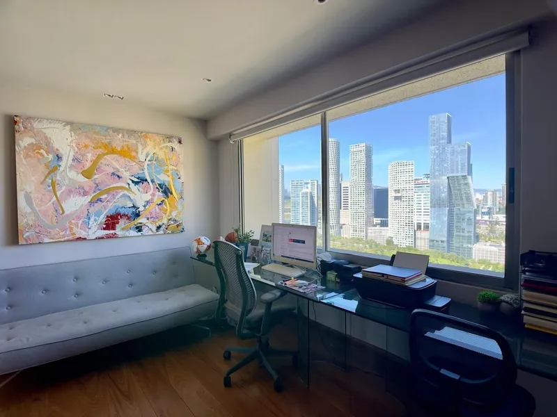 Vive en uno de los departamentos más exclusivos de Santa Fe, dentro del desarrollo Vista del Campo, una de las zonas más seguras y privadas junto al parque La Mexicana. Un hogar que combina espacios amplios, diseño contemporáneo y una vista espectacular hacia los volcanes, Cumbres de Santa Fe y Parque La Mexicana. Espacios que inspiran Con 360 m² totales, este departamento ocupa un piso completo, con elevador directo al interior y solo un departamento por nivel, lo que garantiza privacidad absoluta. Cuenta con tres amplias habitaciones, cada una con su baño, un estudio independiente (posible 4ta habitación), family room y una terraza panorámica ideal para disfrutar los amaneceres sobre la ciudad. La sala principal, revestida con mármol de Egipto, se abre hacia grandes ventanales que llenan los espacios de luz natural durante todo el día. La cocina, de estilo contemporáneo, ofrece una barra desayunador y vista al bosque, perfecta para compartir momentos en familia. Comodidad y funcionalidad Dispone de cuatro estacionamientos techados, cuarto de servicio y área de lavado con un elevador secundario de gran capacidad diseñado para mudanzas y el servicio. El departamento fue construido en 2006 con materiales de alta calidad y una distribución pensada para el confort familiar. Además tiene una bodega de 10m2 para extender el espacio de almacenamiento. Amenidades y entorno El desarrollo Vista del Campo ofrece gimnasio, alberca techada, jardines arbolados, salón de eventos, zona pet-friendly y seguridad profesional 24 horas. Su ubicación, al lado del Parque La Mexicana, lo coloca en el corazón de una zona de alta plusvalía rodeada de centros comerciales, colegios y restaurantes de primer nivel. Detalles de la propiedad * Valor del inmueble: $17,340,000 MXN * Precio: $16,500,000 MXN * Se aceptan créditos bancarios. * Entrega: desocupado. Agenda una visita para conocer esta oportunidad de vivir en un desarrollo exclusivo.