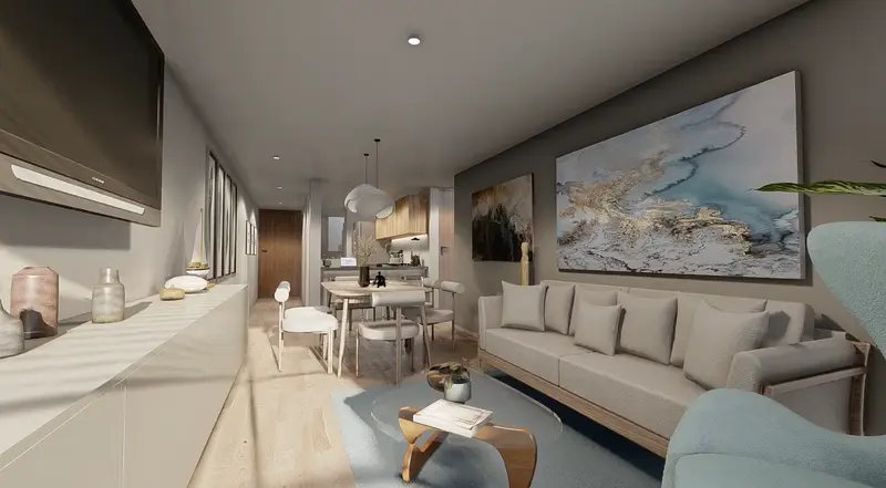 ¡Les presentamos una oportunidad única para adquirir un hermoso departamento exterior en nuestro exclusivo proyecto de departamentos! Este encantador hogar combina diseño moderno, comodidad y un espacio al aire libre para disfrutar de la vida al máximo. Estamos seguros de que esta propiedad superará todas sus expectativas y se convertirá en el lugar perfecto para construir su nuevo hogar. Con 66.58m2 habitables y un acogedor balcón de 3.36 m2, este departamento les ofrece un espacio funcional y versátil para vivir y relajarse. Cada detalle ha sido cuidadosamente diseñado para brindarles una experiencia residencial de calidad. Al ingresar al departamento, serán recibidos por una estancia y comedor amplios, ideales para recibir a sus seres queridos y crear recuerdos inolvidables. La cocina, equipada con modernos electrodomésticos y acabados de alta calidad, es perfecta para preparar deliciosas comidas y disfrutar de momentos culinarios. Este departamento cuenta con dos recámaras espaciosas que ofrecen un refugio tranquilo y relajante. Además, encontrarán un estudio adicional, el cual pueden personalizar según sus necesidades, ya sea como un espacio de trabajo en casa o un área de hobbies. También cuenta con dos baños completos, brindándoles comodidad y privacidad para toda la familia y los invitados. Un balcón privado les permitirá disfrutar del aire fresco y relajarse al aire libre. Es el lugar perfecto para crear un espacio de descanso, añadir plantas y flores, o simplemente disfrutar de la vista panorámica. Este departamento cuenta con un cajón de estacionamiento, proporcionándoles seguridad y comodidad para su vehículo. No pierdan la oportunidad de adquirir este maravilloso departamento que ofrece un estilo de vida excepcional. Nuestro equipo está listo para brindarles más información y ayudarles a dar el primer paso hacia la adquisición de su nuevo hogar. ¡Contáctennos hoy mismo para obtener más detalles y programar una visita personalizada! ¡Aseguren su lugar en esta exclusiva comunidad y disfruten de una vida de lujo y comodidad! Recuerden que los precios y disponibilidad están sujetos a cambios sin previo aviso.