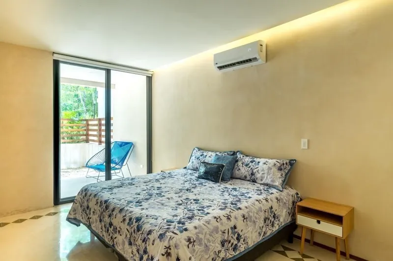 Amplio departamento de 1 recamara en venta dentro de Aldea Zamá en Tulum! Aldea Zama es la zona residencial con más auge en Tulum, donde los propietarios pueden crear y desarrollar su propio espacio de vida y de negocio. Con áreas verdes protegidas que mantienen el atractivo natural de la región. Se han establecido directrices de estética y construcción para promover un ambiente de buen gusto en toda la comunidad. Para vivir en una lujosa y exclusiva área y disfrutar de la naturaleza…. Cuenta con urbanización privada, servicios, calles y andadores de concreto hidráulico, ciclo-pistas, cenotes, selva y una zona comercial planificada. Este precioso departamento, es parte de un condominio llamado Azara condos. Cuenta con acabados de muy buen nivel utilizando materiales de la región y creando un diseño contemporáneo con toques caribeños. Azara esta formado por únicamente 18 unidades y ofrece amenidades como alberca común con área de palapa, jardines, áreas verdes, área de estacionamiento, etc. -1 recamara -2 baños completos -Cocina -sala -comedor -patio privado -totalmente amueblado -Alberca común Medidas: Interior: 64.85 m2 Terraza cubierta: 4.80 m2 Jardín privado: 24.00 m2 TOTAL: 93.65 M2