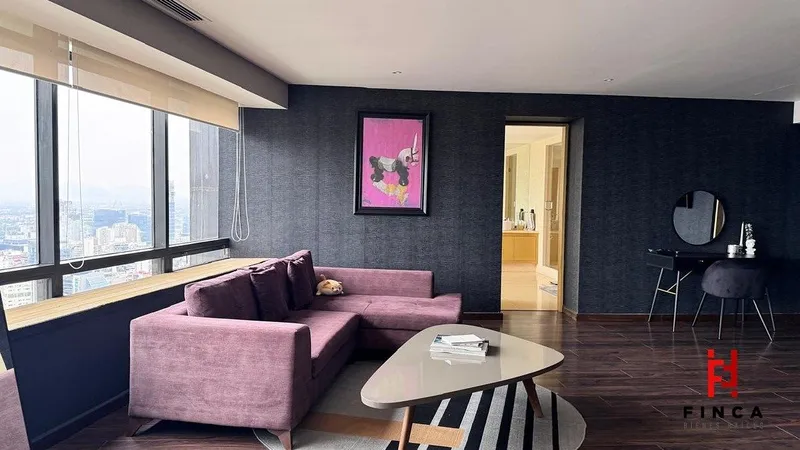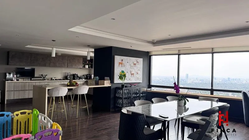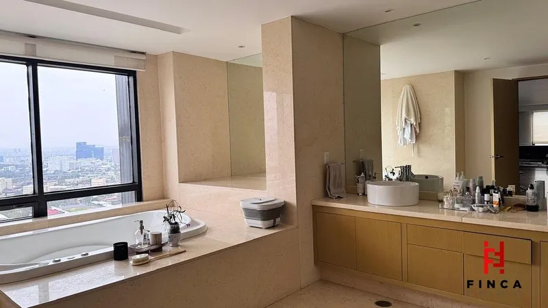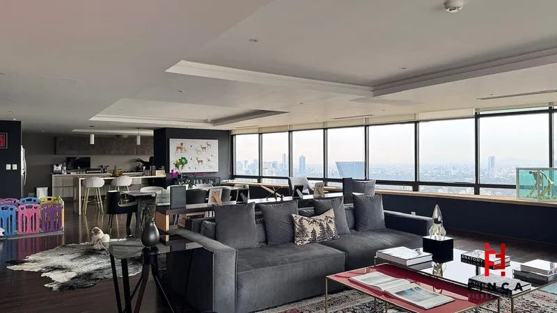 ESPECTACULAR PENTHOUSE CON VISTAS PANORÁMICAS A TODA LA CIUDAD Y AL PONIENTE. PROPIEDAD VERDADERAMENTE ÚNICA, RESULTADO DE LA UNIÓN DE DOS PH, LO QUE DA COMO RESULTADO UNA DISTRIBUCIÓN AMPLIA Y ESPECIAL. CUENTA CON ELEVADOR DIRECTO AL PISO. AL INGRESAR, UN ELEGANTE RECIBIDOR DA PASO A UN GRAN ESPACIO ABIERTO DE SALA, COMEDOR Y COCINA, TODOS CON VENTANALES DE PISO A TECHO QUE INUNDAN DE LUZ NATURAL Y ENMARCAN VISTAS INIGUALABLES. UN AMPLIO PASILLO HA SIDO TRANSFORMADO EN UN ESPACIO DE GRAN BELLEZA Y DISEÑO, INTEGRANDO UN SALÓN FAMILIAR Y CONECTANDO CON DOS ESPLÉNDIDAS RECÁMARAS. LA RECÁMARA PRINCIPAL ES UNA VERDADERA MASTER SUITE DE GRAN TAMAÑO, CON BAÑO REVESTIDO EN PLACAS DE MÁRMOL Y UN VESTIDOR EXCEPCIONAL. LA RECÁMARA SECUNDARIA, IGUALMENTE AMPLIA, CUENTA CON BAÑO COMPLETO Y VESTIDOR. DISPONE ADEMÁS DE ÁREA DE LAVADO Y CUARTO DE SERVICIO INTEGRADOS, ASÍ COMO TRES CAJONES DE ESTACIONAMIENTO. EL EDIFICIO OFRECE AMENIDADES DE PRIMER NIVEL: HELIPUERTO, RESTAURANTE, SALONES PARA EVENTOS, GIMNASIO, SALÓN DE BELLEZA, JARDÍN, LUDOTECA Y ALBERCA CLIMATIZADA. VIGILANCIA 24 HORAS Y VALET PARKING COMPLETAN ESTA EXPERIENCIA DE LUJO. AP SPECTACULAR PENTHOUSE WITH PANORAMIC VIEWS OF THE ENTIRE CITY AND THE WESTERN SKYLINE. A TRULY UNIQUE RESIDENCE CREATED BY COMBINING TWO PENTHOUSES INTO ONE, RESULTING IN AN EXCEPTIONAL AND SPACIOUS LAYOUT. FEATURES PRIVATE ELEVATOR ACCESS DIRECTLY TO THE RESIDENCE. AP