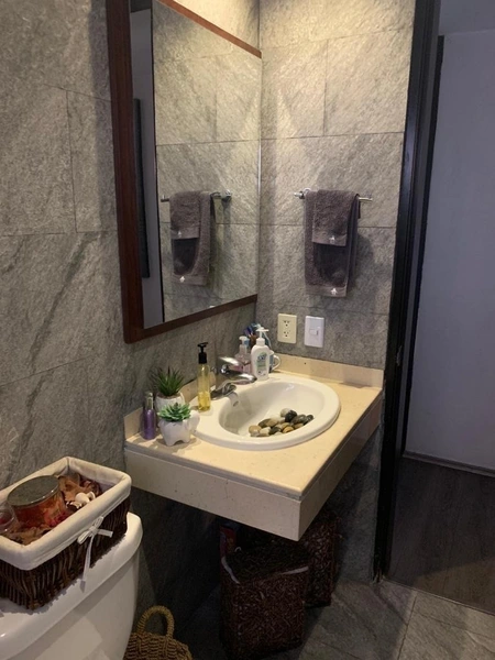 Excelente opción de compra o renta. El departamento tiene sala y comedor, cocina abierta con barra y cubierta de granito Tiene tres recámaras, la principal con vestidor y baño. La recámara dos y tres con closet de muy buen tamaño, y comparten baño. Los baños con mármol. Piso de ingeniera en todo el departamento. Cuarto de lavado y de servicio con baño completo La torre tiene su salón de fiestas con jardín Y cuenta con una de las mejores Casa Club de los residenciales en Bosque Real, con cancha de tenis y de paddle, alberca semi-olimpica, jardínes, asadores, ludoteca, salón de jóvenes, salón de adultos, salón de eventos para 300 personas con cocina industrial, gimnasio