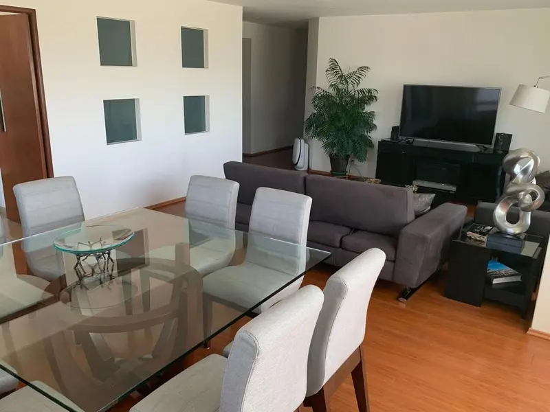 Residencial los Sauces 214 mts2 Jardín común 3 baños 1 medio baño 3 recámaras, closet y vestidor en la principal cocina integral Cuarto de servicio Area de lavado Se acepta mascota 3 cajones de estacionamiento Elevador Bodega Alberca, gimnasio, salón de fiestas, cine,