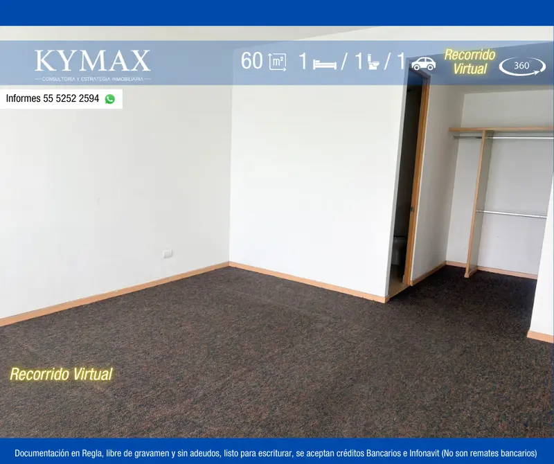 ¡Descubre tu nuevo hogar! Hermoso Departamento en Excelente Ubicación El departamento consta de: • 60m² de construcción • 1 Recámara amplia • 1 Baño moderno • 1 Estacionamiento (No. 85) • Piso 33 • Total pisos 35 • Vista exterior impresionante desde el piso 33 • con elevador • Acceso controlado • Mantenimiento: $2,510 • estacionamiento visitante • Gimnasio equipado • Salón de usos múltiples • Area de lavandería • Portería y conjunto cerrado • Cocina integral con estufa y campana • Piso laminado en área social y alfombra en habitación • Instalación para gas por tanque estacionario • NID * Precio De Venta $4,471,000 Infonavit con gastos notariales $4,829,000 Créditos aceptados: Infonavit, Bancario, Cofinavit, Recurso propio y Fovissste Ubicación: • Cerca de Centro Santa Fé, Plaza Samara, Patio Santa Fé y Parque La Mexicana • Accesible a transporte público de autobús y taxi • A pocos minutos de Walmart, Chedraui y Club de Golf Cañada Santa Fé ¡No pierdas la oportunidad de vivir en uno de los mejores condominios de Santa Fe! Contáctanos para más información y agenda una cita para visitar este increíble departamento. ¿Sueñas con tener un hogar propio? Sabemos que comprar una propiedad puede ser un desafío financiero. Por eso, ofrecemos opciones de financiamiento y crédito personalizadas para ayudarte a lograr tu objetivo. • Financiamiento personalizado para tu comodidad • Créditos con tasas competitivas • Asesoría personalizada para encontrar la mejor opción para ti Nuestros expertos están aquí para ayudarte a hacer realidad tu sueño. ¡Contáctanos hoy mismo para obtener más información y encontrar la solución perfecta para ti! Estamos comprometidos con tu satisfacción y nos esforzamos por brindarte la mejor experiencia en la compra de tu hogar.