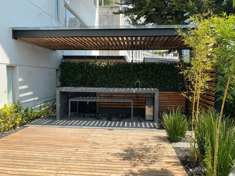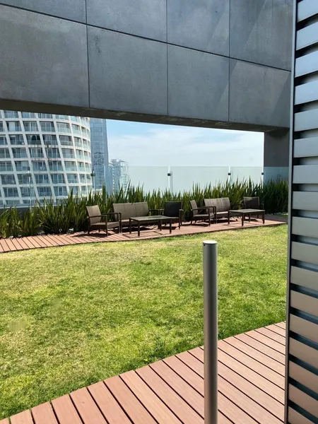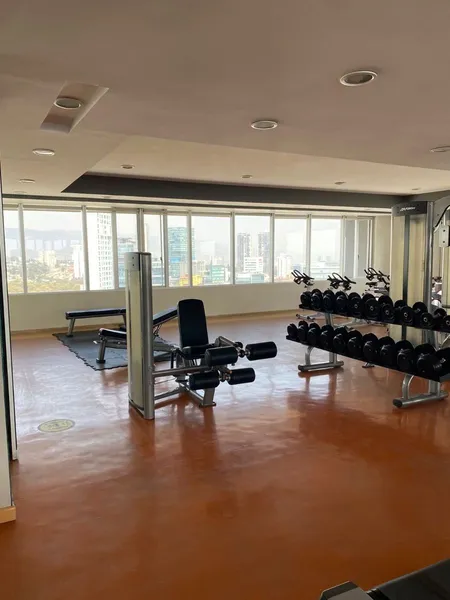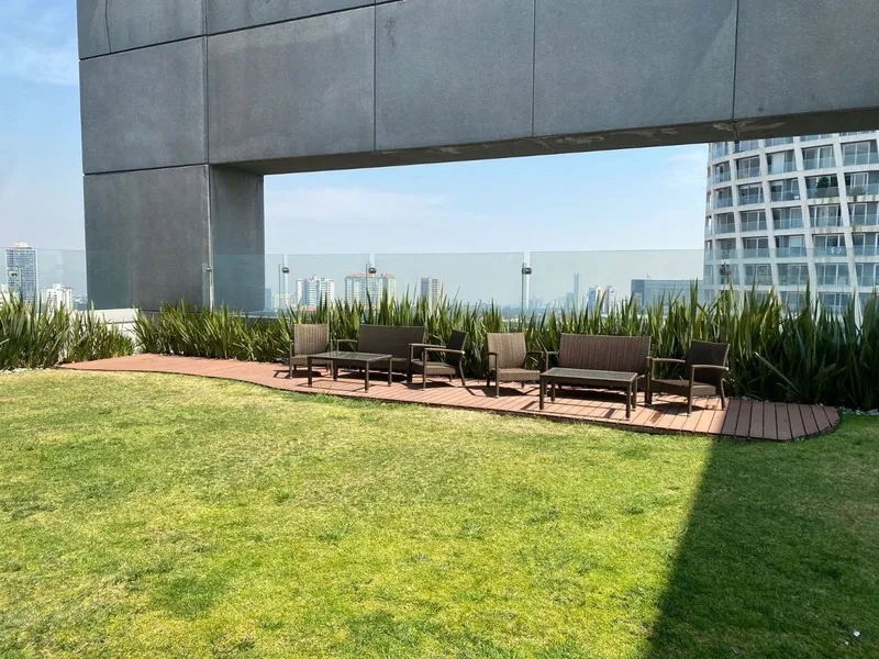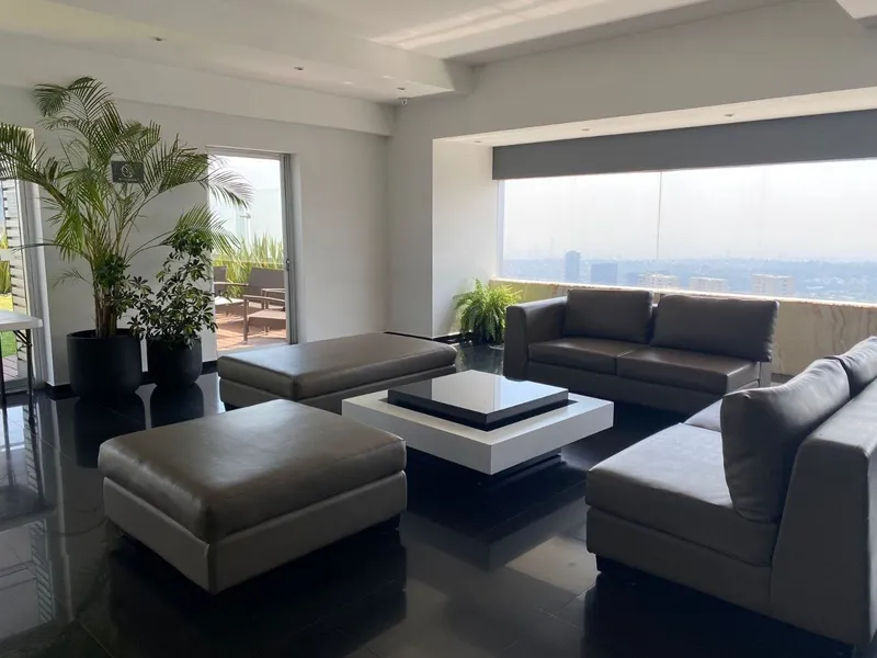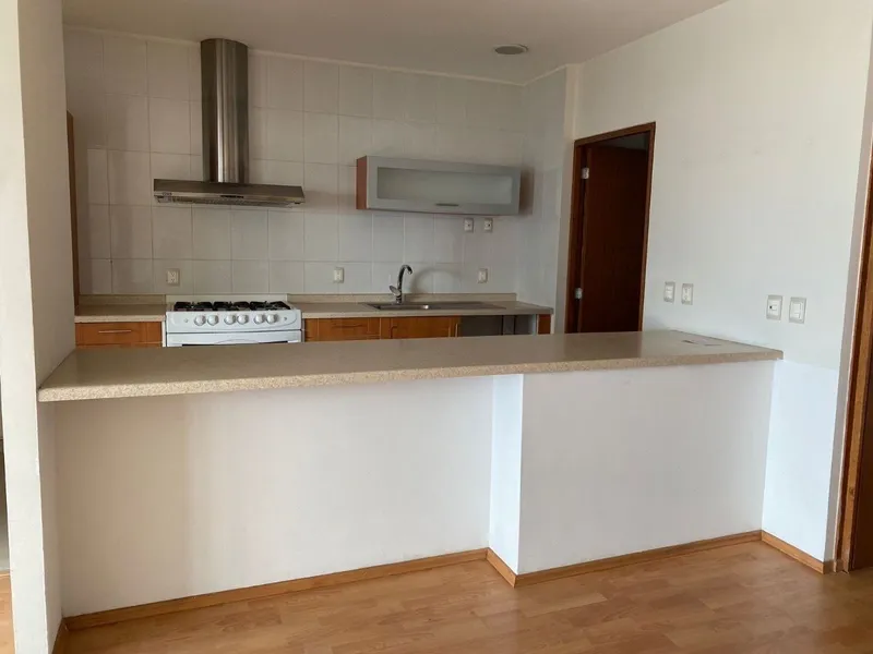 Agradable departamento dentro de un exclusivo y bien mantenido conjunto. Área= 113m2 Sala - comedor, dos recamaras, dos baños completos, cocina completa, patio de servicio, dos cajones de estacionamiento. Piso alto, silencioso y con increíbles vistas, excelentes vialidades, todos los servicios dentro del área. Amenidades: Centro de negocios alberca techada jardín con asadores centro de negocios salón de fiestas gimnasio Vigilancia 24/7