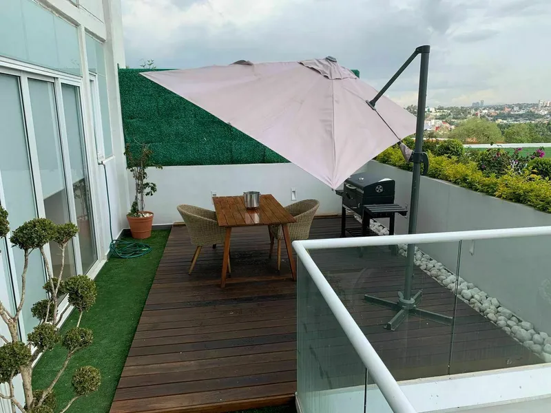 De los pocos departamentos con TERRAZA en este nuevo desarrollo TOWERS dentro de Bosque Real. Terminado con un exquisito gusto y acabados de primera, este departamento ofrecer una experiencia como pocos la pueden tener dentro de Bosque Real, en esta calidad, espacio y precio. Diseñado para disfrutar de la vista y del privilegio de tener terraza para compartir con los amigos o tomar el café viendo cómo cambian los tonos del cielo en la panorámica arbolada de Bosque Real. Terraza con espacio suficiente para una mesa amplia de 8 personas (o más) con un asador y además con acceso desde la recámara principal. Se extiende desde la sala, lo que permite ampliar la zona social para reuniones o en pareja. Está en la última torre del conjunto TOWERS, con todas las AMENIDADES para estrenar como Gimnasio, Ludoteca, Business Center, Salón de eventos y Terraza. 2 recámaras 2 baños 1 cuarto de servicio con baño completo 2 estacionamientos 1 bodega Con seguridad 24 x 7 AMENIDADES: Gym, ludoteca, salón de eventos, terraza privada y comunitaria, jardín, shooter de basura, 2 elevadores cada 2 deptos. (uno de servicio). Precio $6,950,000,00 MXN